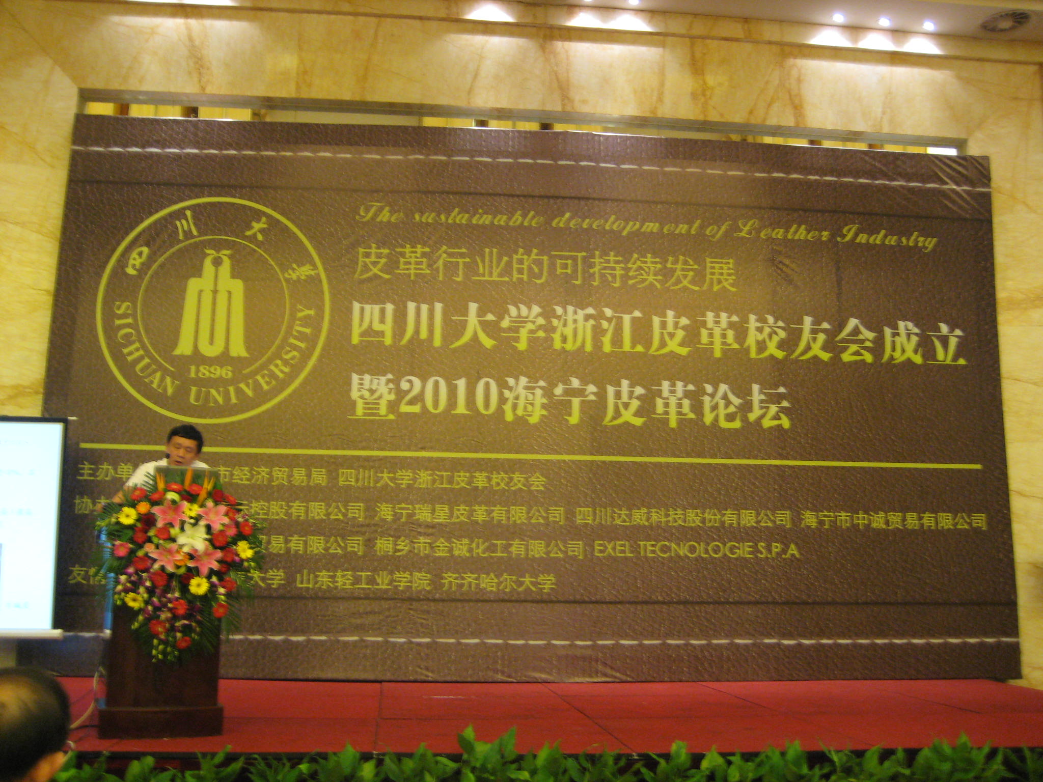 2010年8月28日,四川大学浙江皮革校友会成立大会在浙江海宁市隆重举行。会议与皮革论坛结合进行,来自浙江、上海、广东地区的200多位校友参加本次大会。 中国工程院石碧院士、中国皮革协会名誉会长徐永先生,中国皮革和制鞋工业研究院院长杨承杰先生等多位专家应邀出席了会议。bw必威西汉姆联官网原院长廖隆理教授、四川大学校友会周密副秘书长、何有节副院长及皮革系教师代表林炜和程海明出席了成立大会。据了解,这是四川大学在浙江省所成立的第一个皮革行业的专业性校友会。 参加会议的还有海宁市政府的代表、兄弟学校校友会、四川大学上海校友会、温州校友会、广东皮革校友会等的代表。大会的召开得到了卡森国际控股有限公司、海宁瑞星皮革有限公司、四川达威科技股份有限公司、上海达明贸易有限公司等多家企业的大力支持。 我校校友会周密副秘书长宣读了母校关于同意成立四川大学浙江皮革校友会的批复,并与第一届四川大学浙江皮革校友会名誉会长石碧院士、会长张明发先生一起参加了校友会的揭牌仪式。