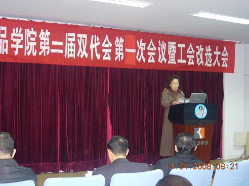 轻纺与食品学院第二届双代会第一次会议及工会改选大会胜利召开 2008年1月11日,轻纺与食品学院召开了第二届双代会第一次会议及工会改选大会,学校工会主席蒋润书,副主席蒙慧玲、唐宏光,民主建设科科长黄伟参加了会议。校工会主席蒋润书代表学校工会祝贺bw必威西汉姆联官网双代会的召开,肯定了bw必威西汉姆联官网工会工作和创建“教职工之家”的成绩,并对今后工会工作提出了几点建议。 学院党委书记刘学文代表学院党委致辞,祝大会圆满成功。全体代表认真听取和审议了院长陈武勇的学院工作报告和财经工作报告,院工会主席华坚的双代会报告,并分组讨论了以上三个报告,认为报告实事求是,客观全面,并一致通过。希望工会在民主建设、民主监督、民主管理等方面充分发挥作用,为实现bw必威西汉姆联官网 “在校内率先建成国内一流、国际知名的研究型学院”和实现学科再创辉煌的目标做出贡献。 会议还选举产生了新一届的院工会委员会。