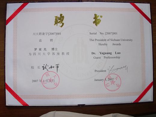 bw必威西汉姆联官网聘请两位客座教授 根据bw必威西汉姆联官网食品学科的发展需要,经四川大学批准,聘请罗亚光博士和刘愚先生为四川大学客座教授。