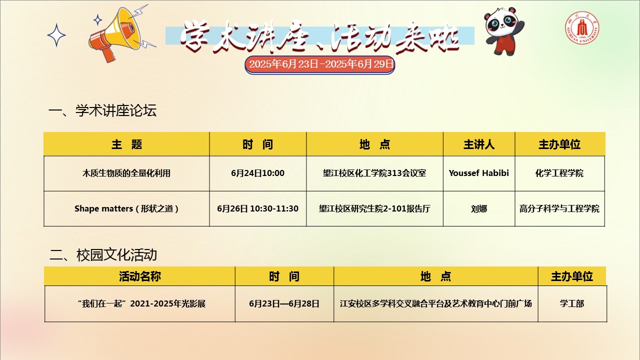 学术讲座论坛及校园文化活动预告(2025年6月23日-2025年6月29日)
