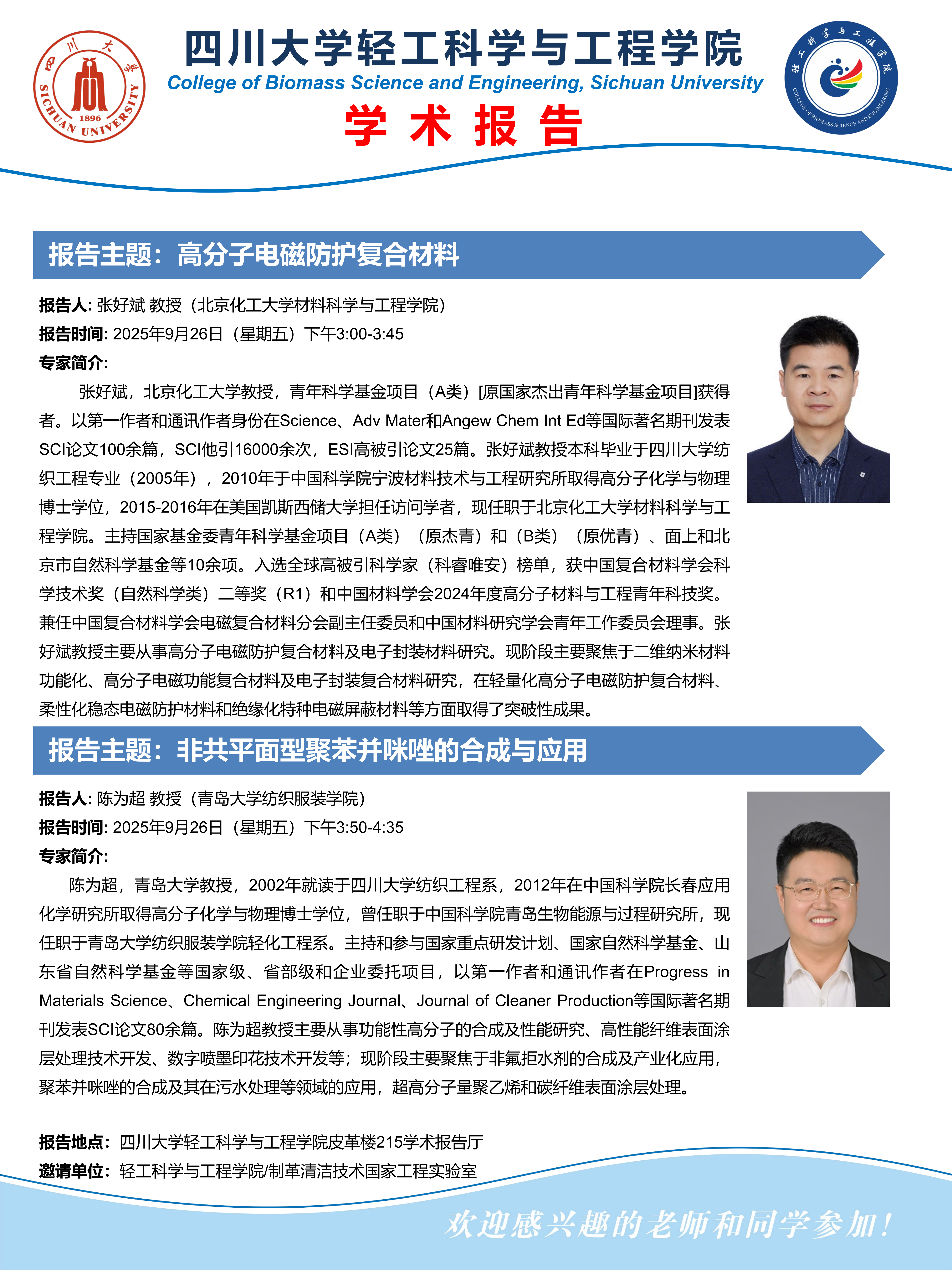 前沿论坛:张好斌教授、陈为超教授 学术报告
