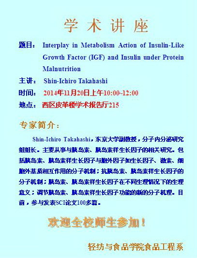 学术讲座Interplay in Metabolism Action of Insulin-Like IGF and Insulin under Protein Malnutrition