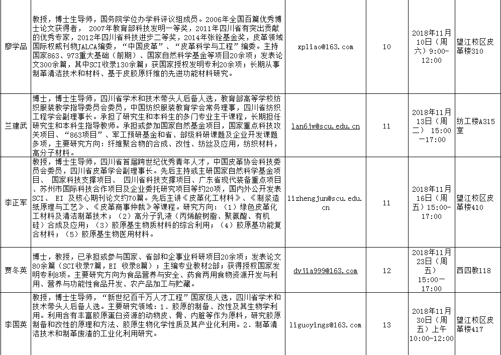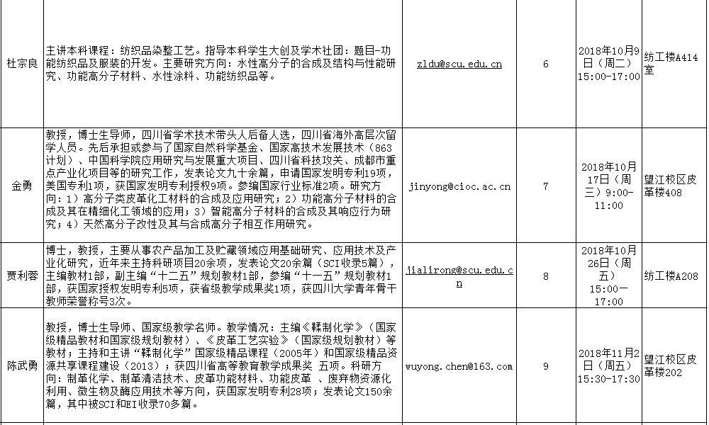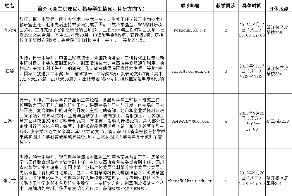 轻纺与食品学院2018-2019学年秋季学期“教授开放日”安排