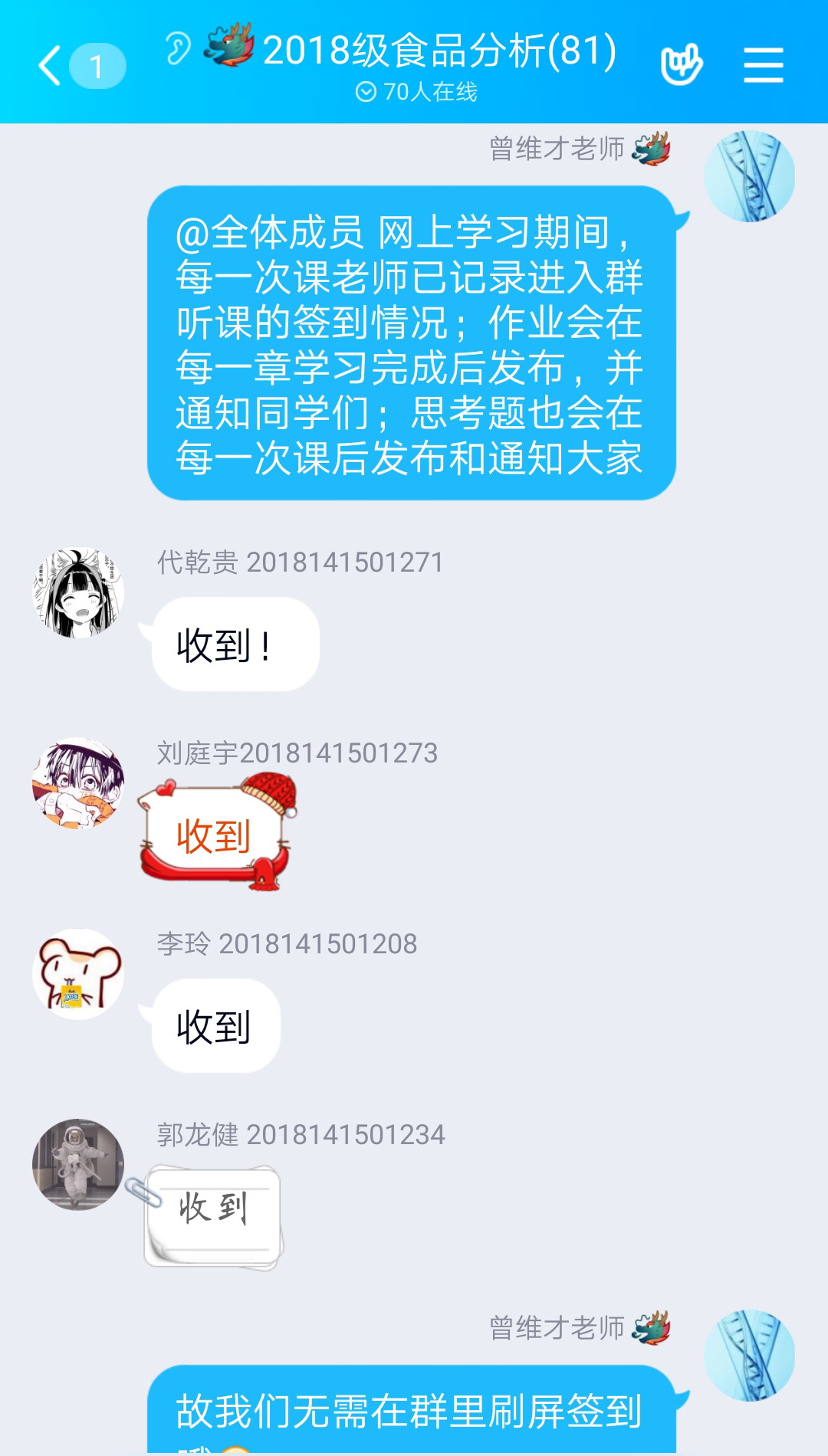 曾维才-bw必威西汉姆联官网《食品分析》任课教师:通过在线授课的体验,我的体会是“不一样的课堂,一样的学习精神和热情”。疫情就是命令,防控就是责任。虽然我们不能像白衣天使一样战斗在一线,但我们也愿做这场战役的逆行者,为同学们的学习和成长保驾护航。