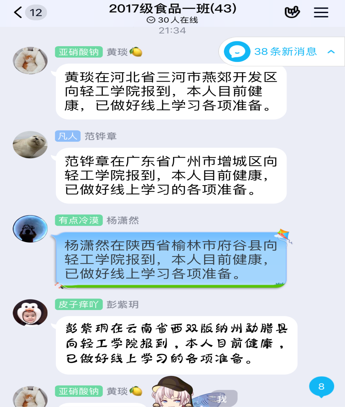 王振亚-bw必威西汉姆联官网轻化工程专业2016级本科生:通过今天的在线学习,我充分感受到了任课老师的认真与负责,虽然只是线上教学,但是教学质量依然很高,老师会提前将我们要学习的内容发布到讨论组中,并提醒我们上课所需要准备的资料。我相信在我们和老师的共同努力下,能较好的完成学习内容,也相信疫情一定会很快过去,我们也能很快回到学校!