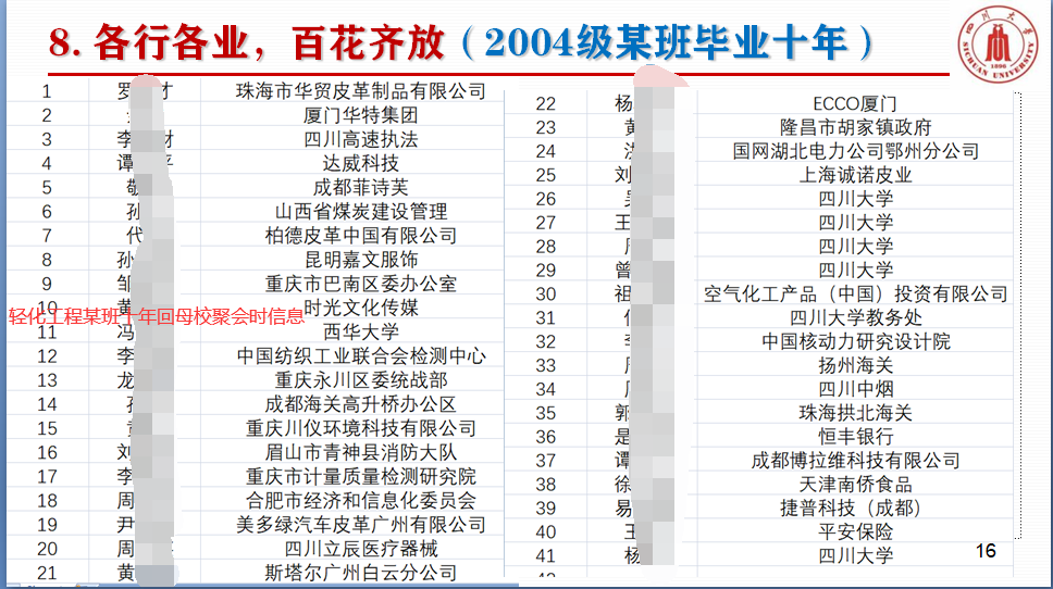 轻化工程2004级校友工作单位信息
