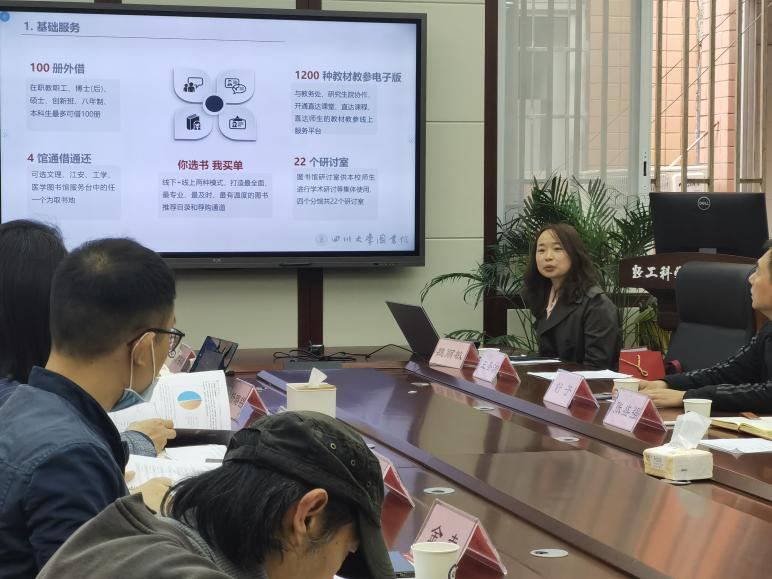 随后,张盛强副馆长介绍了四川大学图书馆在互联网时代,工作服务重心发生了巨大的变化,充分利用网络平台做好信息服务。在图书借阅等传统的基础服务之外,愈加重视数字期刊、数字图书等线上资源的建设与服务。服务形式包含特设课程、知识讲座、嵌入式教学等,力争做到全覆盖服务及知识宣传。此外,王副馆长还介绍了学科服务这一特色板块,针对需求开展学科分析报告等,并表明校图书馆将利用馆藏资源、人力资源优势,做好信息服务。