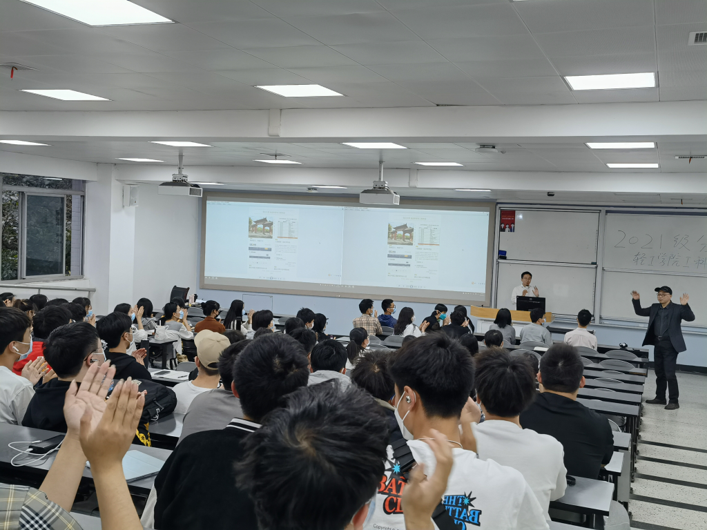随后,何强教授对食品科学与工程专业进行了详细介绍。首先,何强教授提到食品科学与工程的内涵,引出生活中一系列食品领域相关问题,激发学生兴趣。其次,他介绍食品科学与工程专业、食品科学与工程核心知识体系以及学科专业优势亮点。再次,以食品工业在工业经济中地位、杰出校友代表取得显著成绩吸引学生对专业深层次认知,增强专业自信。最后,向低年级学生展示了往届师兄师姐在学科竞赛中获奖作品,鼓励同学们积极参加活动,将所学应用在生活实际中。