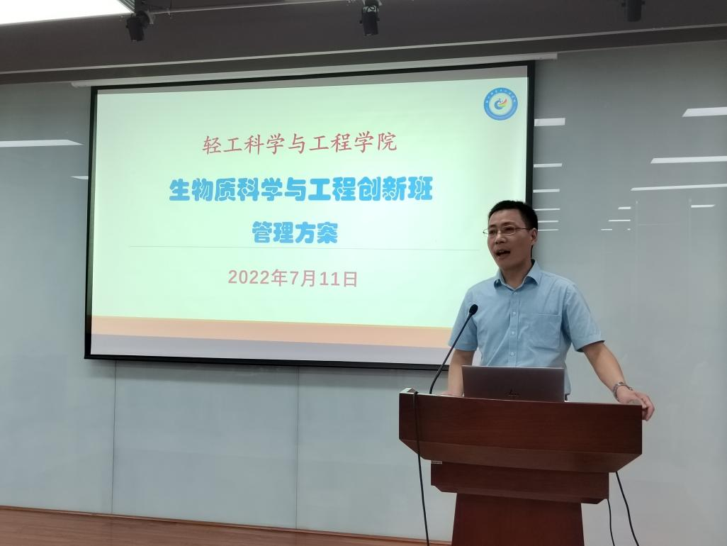 2022年7月11日上午,2021级生物质科学与工程创新班开班仪式在皮革楼215报告厅隆重举行。参加此次开班仪式的有中国工程院院士石碧教授、学院党委李天富书记、冯国涛副书记、陈意副院长、生物质与皮革工程系系主任林炜教授、创新班平台负责人、课程负责人、班主任、导师及全体2021级创新班学生。开班仪式由冯国涛副书记主持。