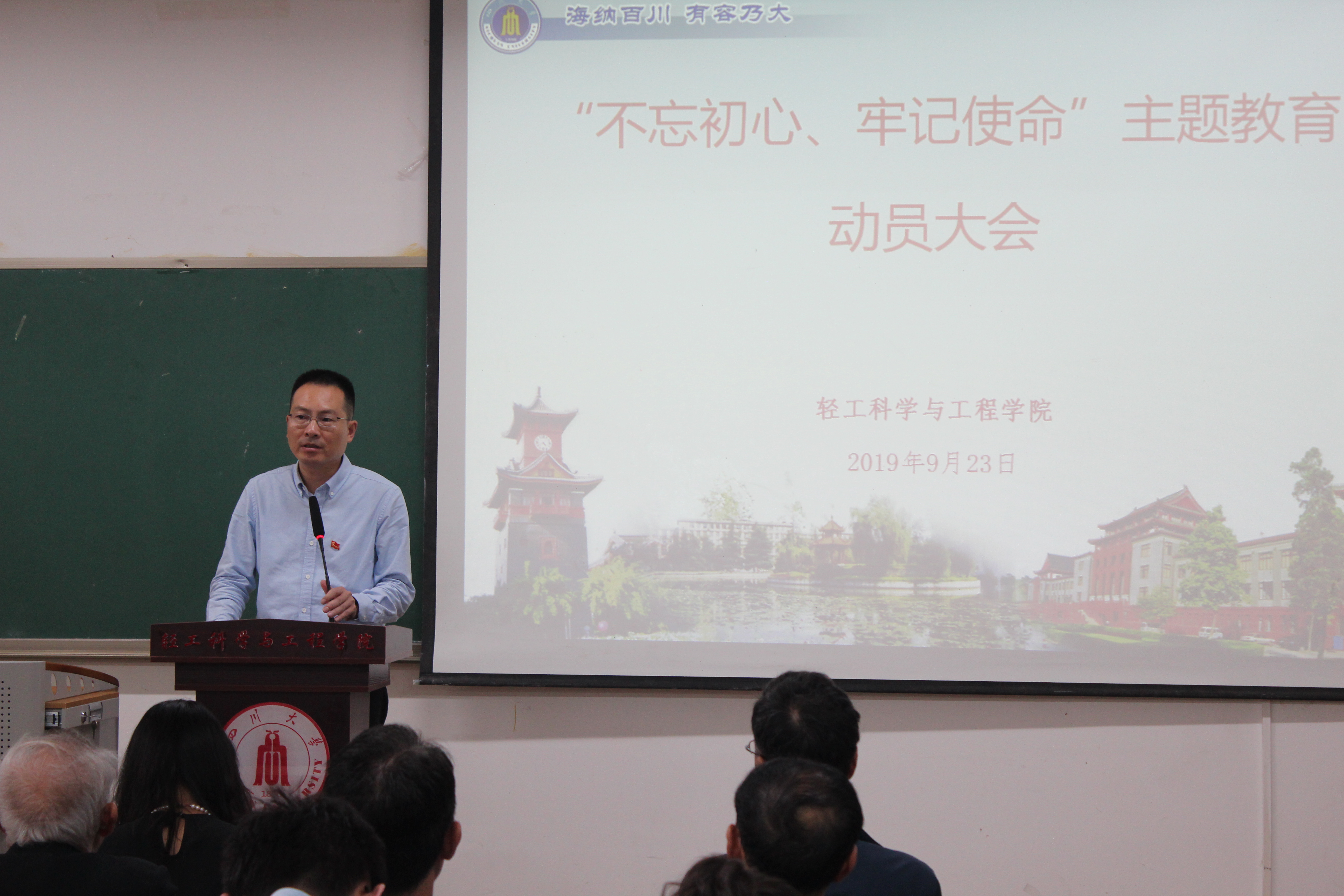 2019年9月23日下午,bw必威西汉姆联官网在纺工附楼205室召开“不忘初心、牢记使命”主题教育动员大会。学校第五指导组组长陈森(学工部部长)、组员蒋莉华(人事处副处长)、李宜(学工部军事科副科长)以及bw必威西汉姆联官网全体党员同志参加了本次大会,大会由何有节院长主持。