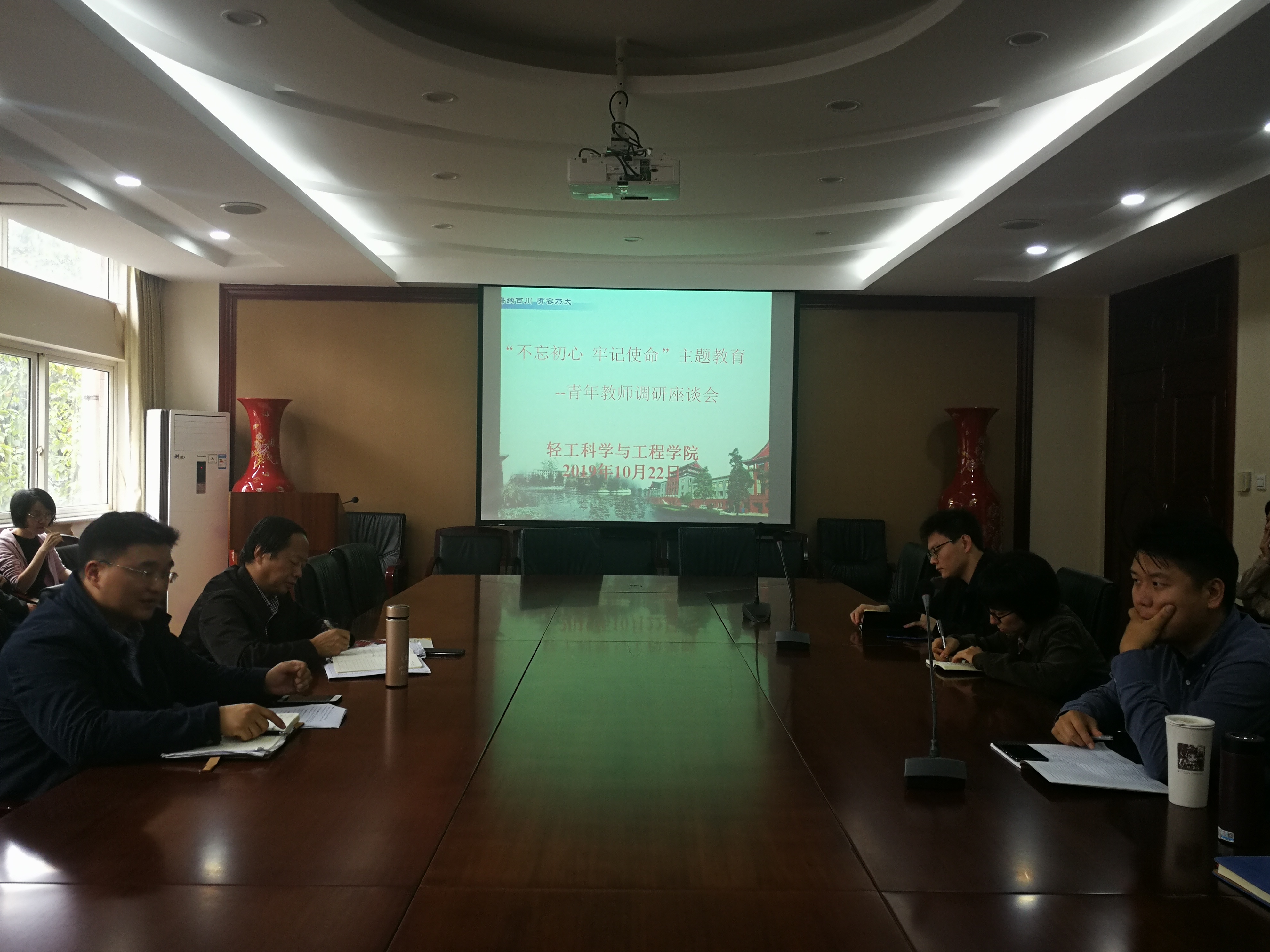2019年10月22日下午,bw必威西汉姆联官网在皮革楼209会议室,召开“不忘初心、牢记使命”主题教育青年教师调研座谈会,党政主要负责人参加本次调研,深入基层认真听取青年教师的意见和建议。