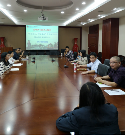 2019年9月27日,在学校、学院党委的统一部署和安排下,皮革教工支部在皮革楼209会议室召开了“不忘初心,牢记使命”主题教育动员会,将本次主题教育的根本任务、具体目标、重点措施和时间节点等内容传达至支部全体党员同志。动员落实全体党员积极“学习原文、调查研究、检视问题和整改落实”。2019年10月18日皮革教工支部在皮革楼209会议室召开组织生活,开展“不忘初心,牢记使命”主题教育活动。