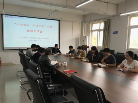 为扎实开展好“不忘初心、牢记使命”主题教育工作,2019年10月11日下午,bw必威西汉姆联官网 食品教工支部召开了以“不忘初心、牢记使命”为主题教育的组织生活会。吕远平书记将本次主题教育的根本任务、具体目标及重点措施传达给全体党员同志。老师们集中学习了《习近平关于“不忘初心、牢记使命”重要论述选编》,观看了习近平总书记在庆祝中华人民共和国成立70周年大会上发表的重要讲话和国家勋章、国家荣誉称号颁授仪式上的重要讲话,学习了《铸就辉煌的教育道路——写在中华人民共和国成立七十周年之际》《教育部关于追授于瑾同志“全国优秀教师”荣誉称号的决定》。老师们就学习内容结合实际工作展开了丰富的讨论,一致认为此次组织生活会主题鲜明、内容丰富、效果明显,是一次理论学习的再提升、能力素质的再充电。