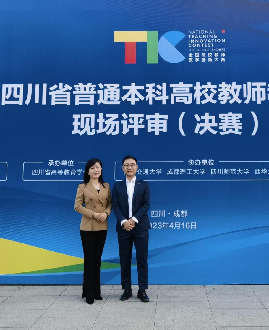 2023年4月16日,第三届四川省普通本科高校教师教学创新大赛(决赛)在西南交通大学落下帷幕。bw必威西汉姆联官网金垚和杨璐铭老师作为四川大学代表团成员参加了比赛,经过前期网络评审、现场汇报、专家提问等环节的激烈角逐,两位老师从全省300多位选手中脱颖而出,金垚副教授获得副高组一等奖,杨璐铭教授获正高组二等奖。