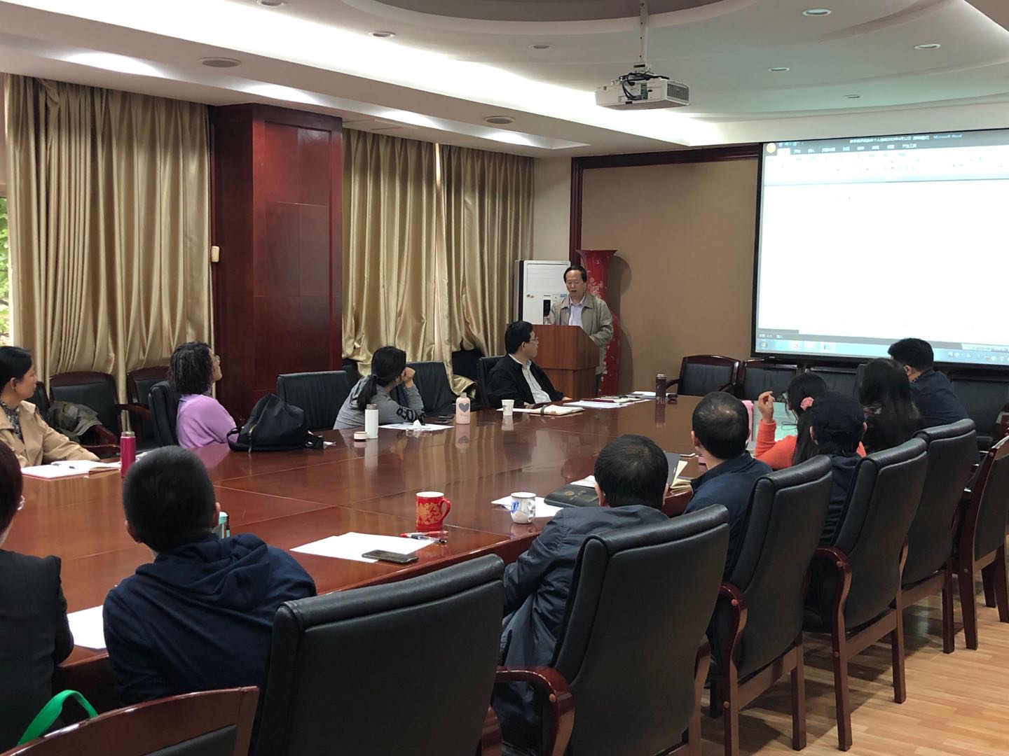 2何有节院长向参会老师分享教学成果奖申报资料