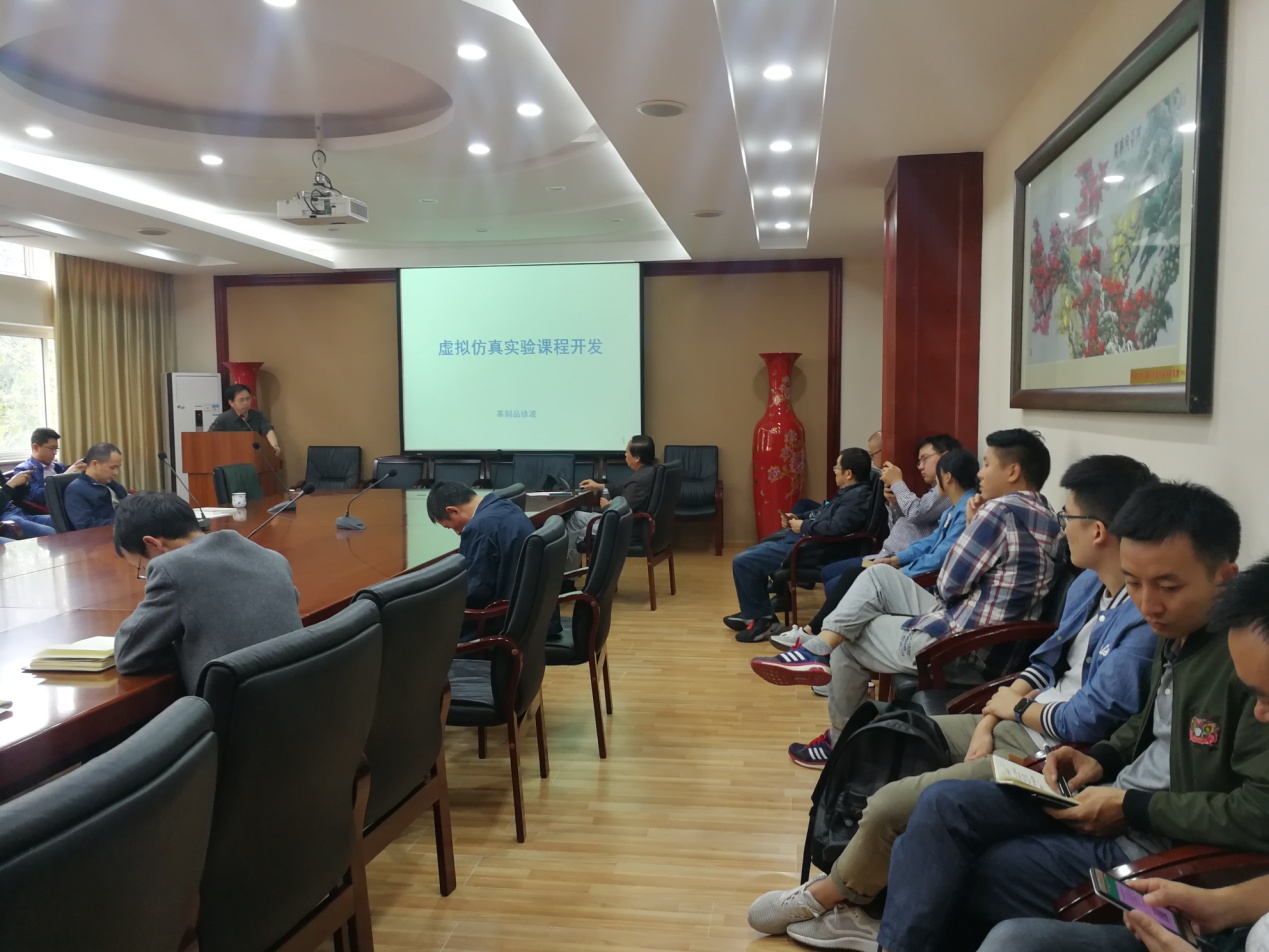 学院副院长彭必雨教授强调了虚拟仿真实验教学的任务与要求,指明了今后努力的方向。副系主任程海明教授结合轻化工程专业特点,归纳了专业实验实践课程与虚拟仿真实验教学的结合点,提炼出有望取得突破的一些典型实验内容。徐波老师结合正在承担的校级虚拟仿真实验课程项目建设经验,探讨了虚拟仿真实验课程建设过程中的重点与难点。青年教师曾运航副教授结合个人教学实践内容,提出了开展虚拟仿真实验教学的设想和基本思路。戴红老师结合申报经验教训,探讨了虚拟仿真教学建设与普通实验教学之间的关系。与会教师纷纷发言,在建设经费、主题提炼、教学脚本、素材收集、互动形式等方面,进行了深入的研讨,会议取得圆满成功。