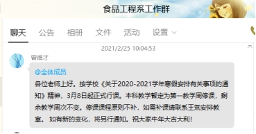学院通过QQ群提醒教师做好上课准备