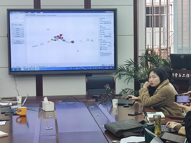 在活动的第二阶段,魏丽敏老师针对师生的学习、科研需求,讲解了文献计量学软件CiteSpace的主要功能及分析方法。魏老师从文献检索、文献导入及数据分析三个方面对软件操作方法进行了讲解,并以关键词“智能服装”为例,现场进行了操作演练。在现场练习过程中,参会老师就文献导入方法、中文文献分析、国内研究趋势分析等问题与魏老师进行了探讨,参会学生就分析结果及图像处理等问题向魏老师进行了请教。