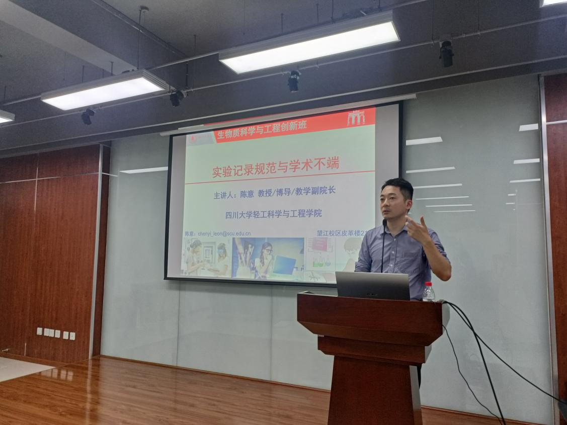 见面会后,陈意副院长为2022级创新班学生作了题为“实验记录规范与学术不端”的学术道德讲座,希望创新班的同学端正学习态度,保持严谨的科学精神,在科研道路上扣好人生第一颗纽扣。