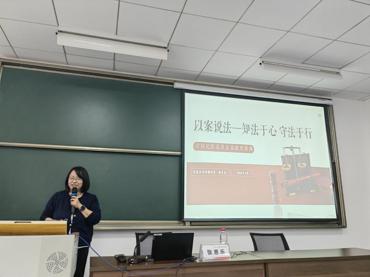 校法律顾问室主任张恩乐以《以案说法——知法于心,守法于行》为题进行报告,从身边的真实案例入手,结合新修订的《事业单位工作人员处分规定》等法律法规和规范性文件,深刻剖析违纪失范典型案例,对学校教师教学科研活动、行政管理和日常生活中常见的涉法风险问题的进行了详细解读,以案说德、以案说纪、以案说法、以案说责,让学员们受警醒、明底线、知敬畏。