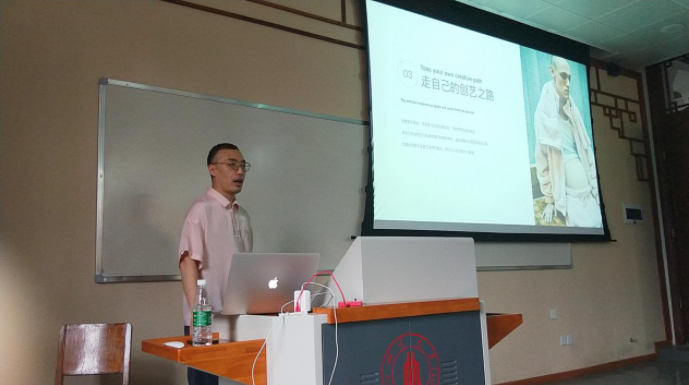 From July 9 to 10, 2018, Feng Sansan, China's top ten designers, founder of FENGSANSAN studio and design director of Beijing Baixue and Beibei children's clothing, was invited to our school to give a series of lectures entitled "Creative Road of Fashion Design" in Wangjiang Campus. This event was arranged during the "Practice and International Course Week" of Sichuan University. Zhao Wu, an associate professor of clothing and apparel design in our college, presided over the event and delivered a welcome speech. Teachers of textile and apparel design and more than 100 students of this major listened to the wonderful lecture.