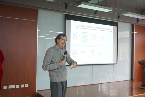 At 10:00 a.m. on April 10, Academician Didier Astruc, a senior foreign teacher of Sichuan University, gave an academic lecture entitled "Ferrocene Dendrimers" to graduate students in the 215 lecture hall of Leather Building, Wangjiang Campus. The lecture was presided over by Yang Li. Professor Youjie He and Professor Haibin Gu attended the lecture.