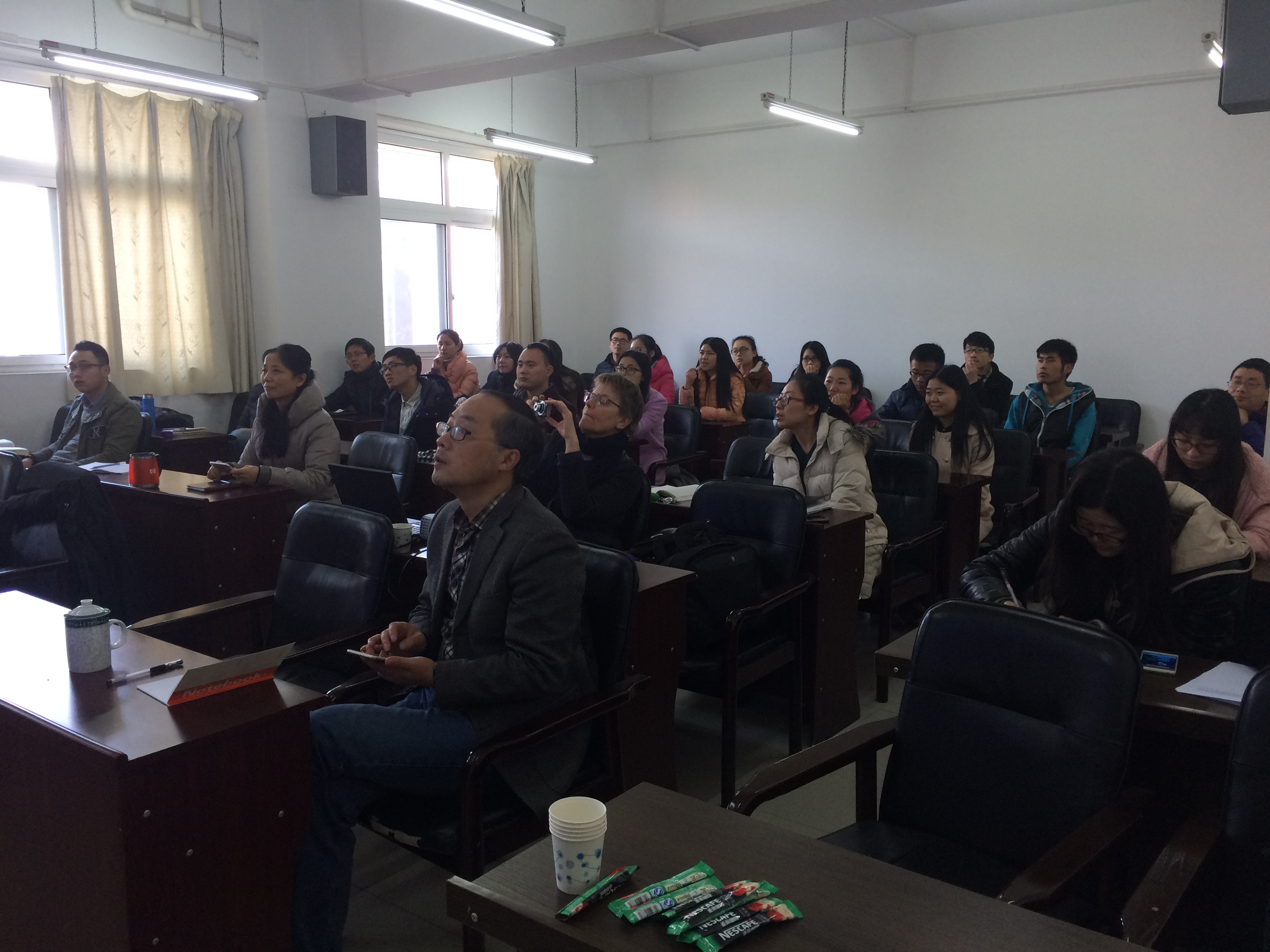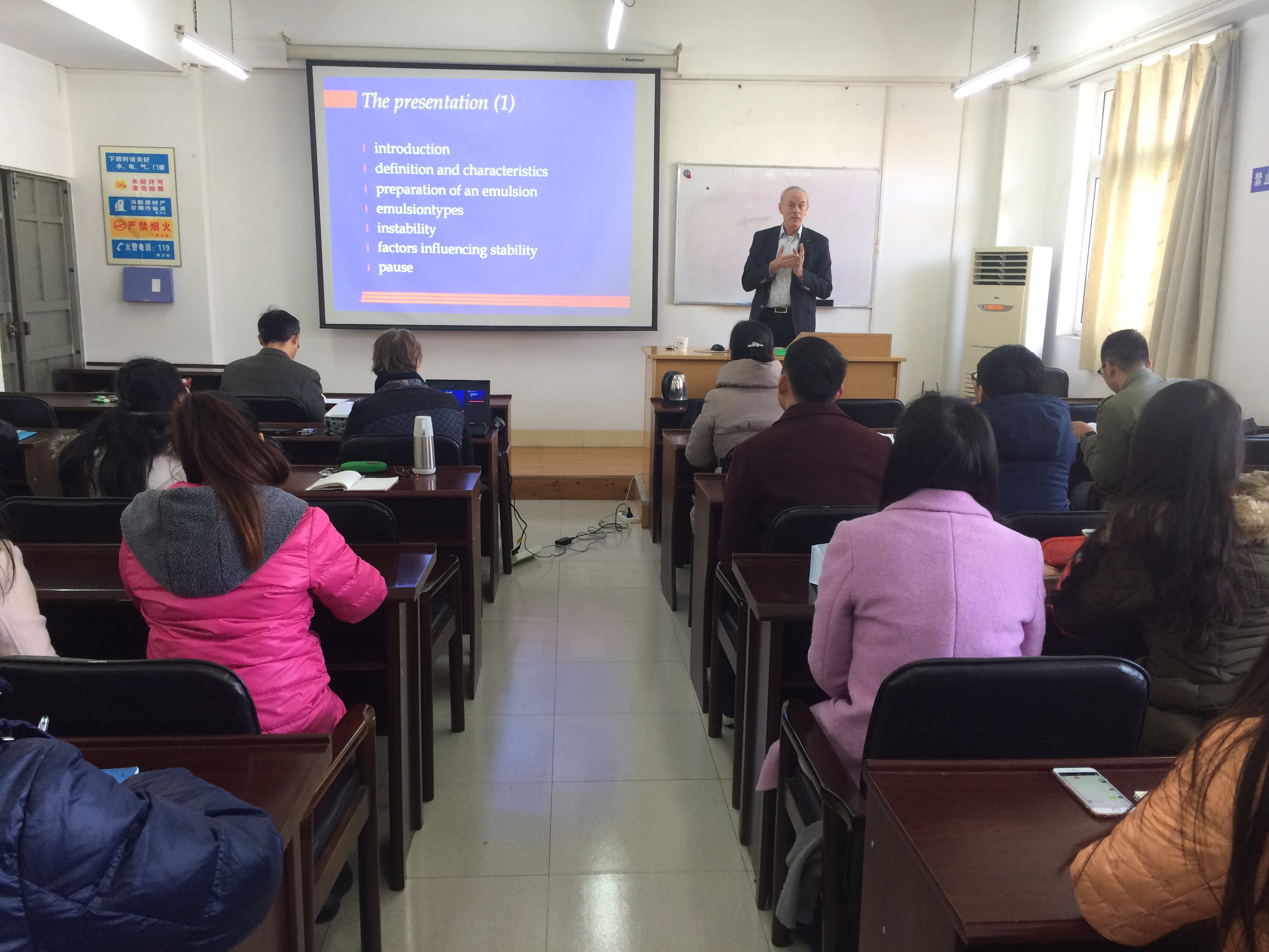 2016年1月21日下午1点,四川大学轻纺与食品学院特邀请荷兰万豪劳伦斯坦大学食品科学高级讲师Jappie先生在纺工楼202报告厅同广大师生举行了以“乳化剂”为主题的学术沙龙活动。活动伊始,轻纺与食品学院钟凯老师对荷兰万豪伦斯坦大学及Jappie先生做了详细的介绍。接下来,Jappie先生结合多年从事食品行业的丰富经验与实践经历,从乳化剂的定义、特性、种类、制备方法、稳定性及影响因素等方面着重介绍了乳化剂在食品领域中的应用,并畅谈了食品行业的发展现状与未来展望。Jappie先生分享了很多图片与实例,生动形象,让大家对食品行业的现状行情以及机遇挑战有了深入的了解。Jappie先生的演讲亲切幽默,深入浅出,以丰富的实战经验赢得师生们的阵阵掌声。演讲结束后,Jappie先生与在场的各位师生进行了深入的交流与互动,并热情解答了师生们提出的问题。学术沙龙活动持续了近两个小时,此次活动丰富了同学们的学术科研视野,对食品行业的行情命脉及未来发展有了更深入的了解,收获颇丰。