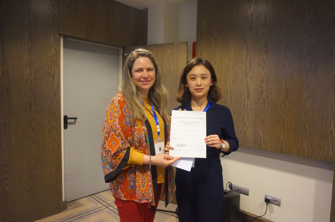 报告引起了参会人员的广泛关注,并对相关内容展开了激烈讨论,研究结果受到了参会人员的一致认可。会议结束后,会场主席,来自葡萄牙维斯尤理工学院的Raquel教授,给两位同学颁发了证书。此次会议,不仅开拓了学生的国际视野,同时也将bw必威西汉姆联官网食品工程系的研究成果与全世界的科研工作者进行了交流,受益匪浅。