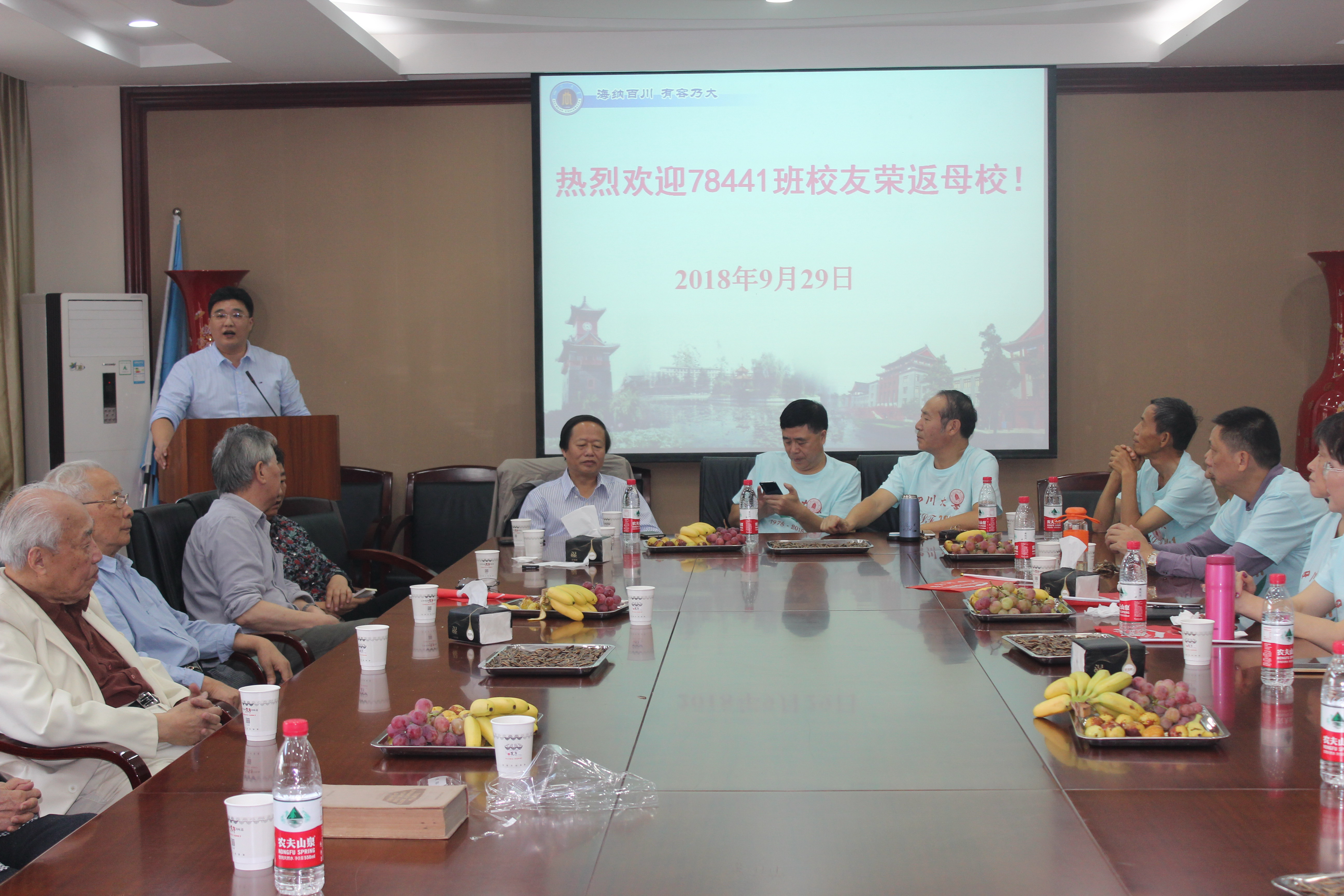 在母校122周年校庆之际,成都科技大学78441班同学举行入学四十周年荣归母校活动。2018929日上午,班级30余人在皮革楼209会议室欢聚一堂,共同回忆大学时光和同学情谊。出席活动的有中国工程院院士石碧教授(78441班同学)、退休教师张扬教授、陈彦教授(78441班同学)、王坤余教授、傅师申教授、杨淑娟老师、轻纺与食品学院原院长廖隆理教授、原院长陈武勇教授以及轻纺与食品学院刘晓虎书记、何有节院长、生物质与皮革工程系主任林炜教授、张廷有教授、张宗才教授(78441班同学)师等。本次活动由78441班原班长陈彦和李元庆同学主持。