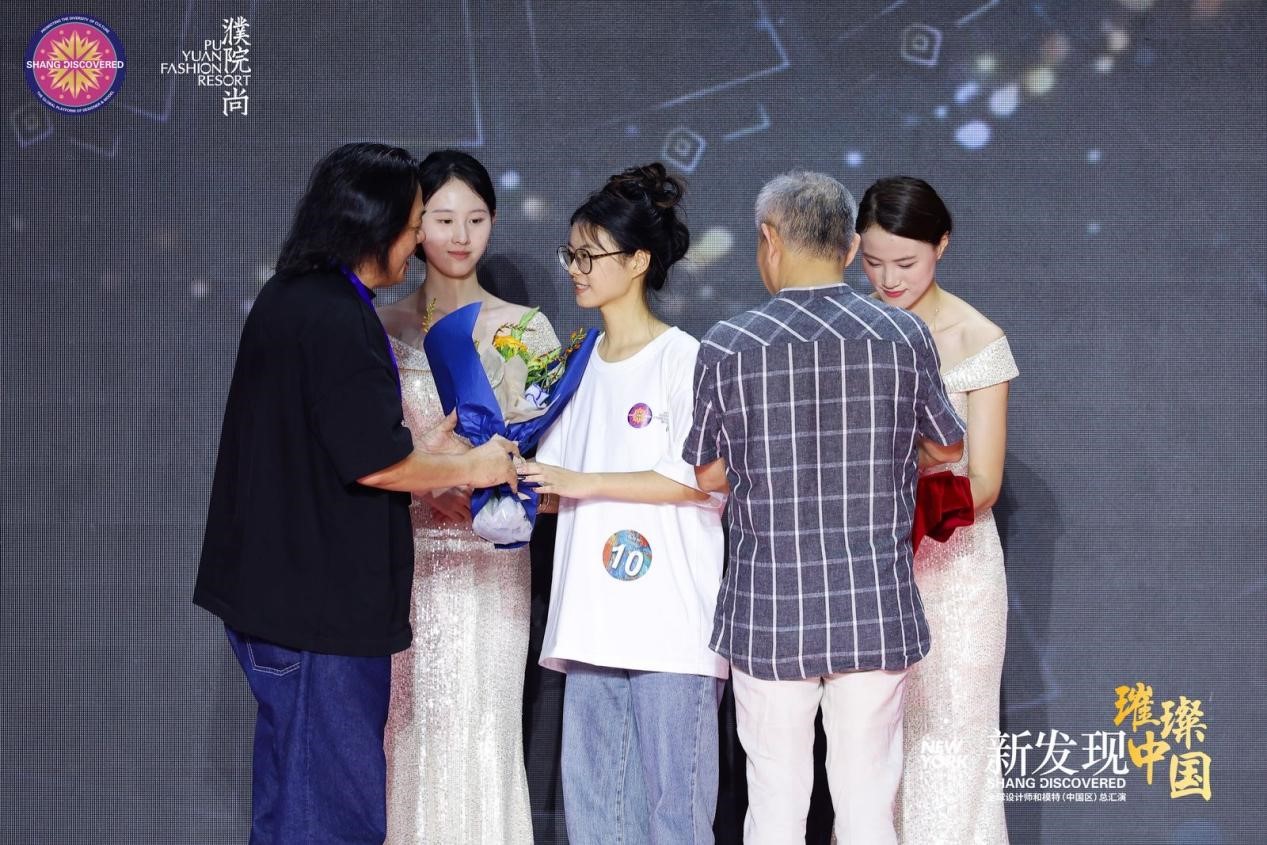 殿堂级服装设计大师张肇达、组委会主席马健荣共同为管彭玥颁奖