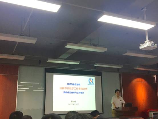 彭必雨副院长从专家进校考察工作方式、审核评估的目标及要点、审核评估的目标及标准、四川大学本科人才培养目标、审核评估的范围、学院工作任务和总体要求、学院工作任务要点及分工、奖惩措施等八个方面对审核评估工作进行了详细阐述。彭院长号召全院教师齐心协力以本次审核评估为契机,进一步凝练学院的办学特色,切实解决教学工作中存在的问题和不足,促进学院本科教学工作再上新台阶,推动学院的“可持续”发展。