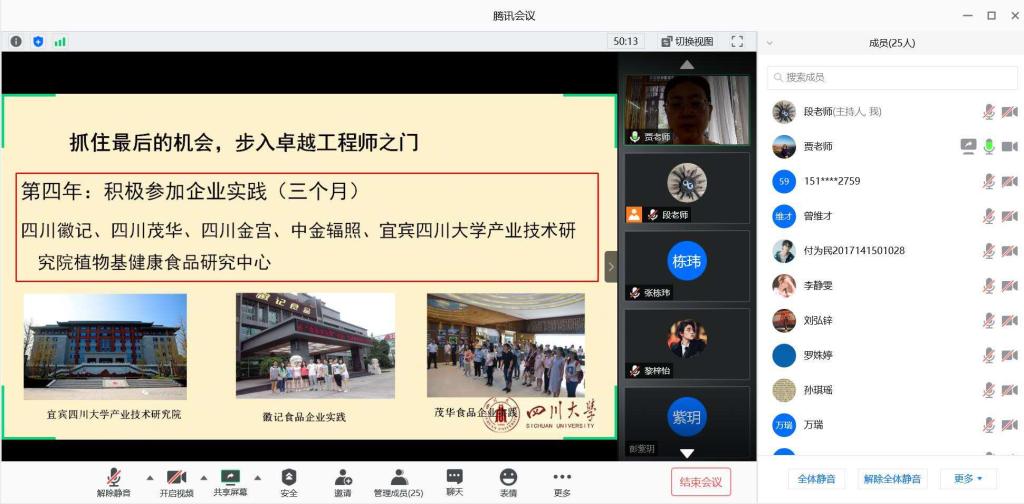 2020年06月21日上午9:00~11:00,bw必威西汉姆联官网食品科学与工程专业通过腾讯会议平台,成功举办“卓越工程师班”(省级)选拔的线上宣讲会。会议由食品科学与工程专业教研室主任段飞霞老师主持,参加会议的有食品工程系副系主任曾维才副教授和卓工班企业实践课程的负责人贾利蓉教授以及2017级食品专业的全体同学。