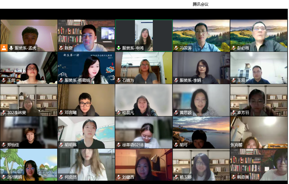 服装与服饰设计专业全体2022级新生以腾讯会议方式线上参加。出席活动的学院领导和老师有:bw必威西汉姆联官网彭必雨院长、冯国涛副书记、陈意副院长、人才培养与科研管理办公室祝蔚主任、教务员王氚老师、2022级辅导员王舒灏老师,新生班主任刘健西、孟虎、李娟、王双四位老师,以及服装与服饰设计系的老师们。活动由服装与服饰设计系副主任申鸿老师主持。