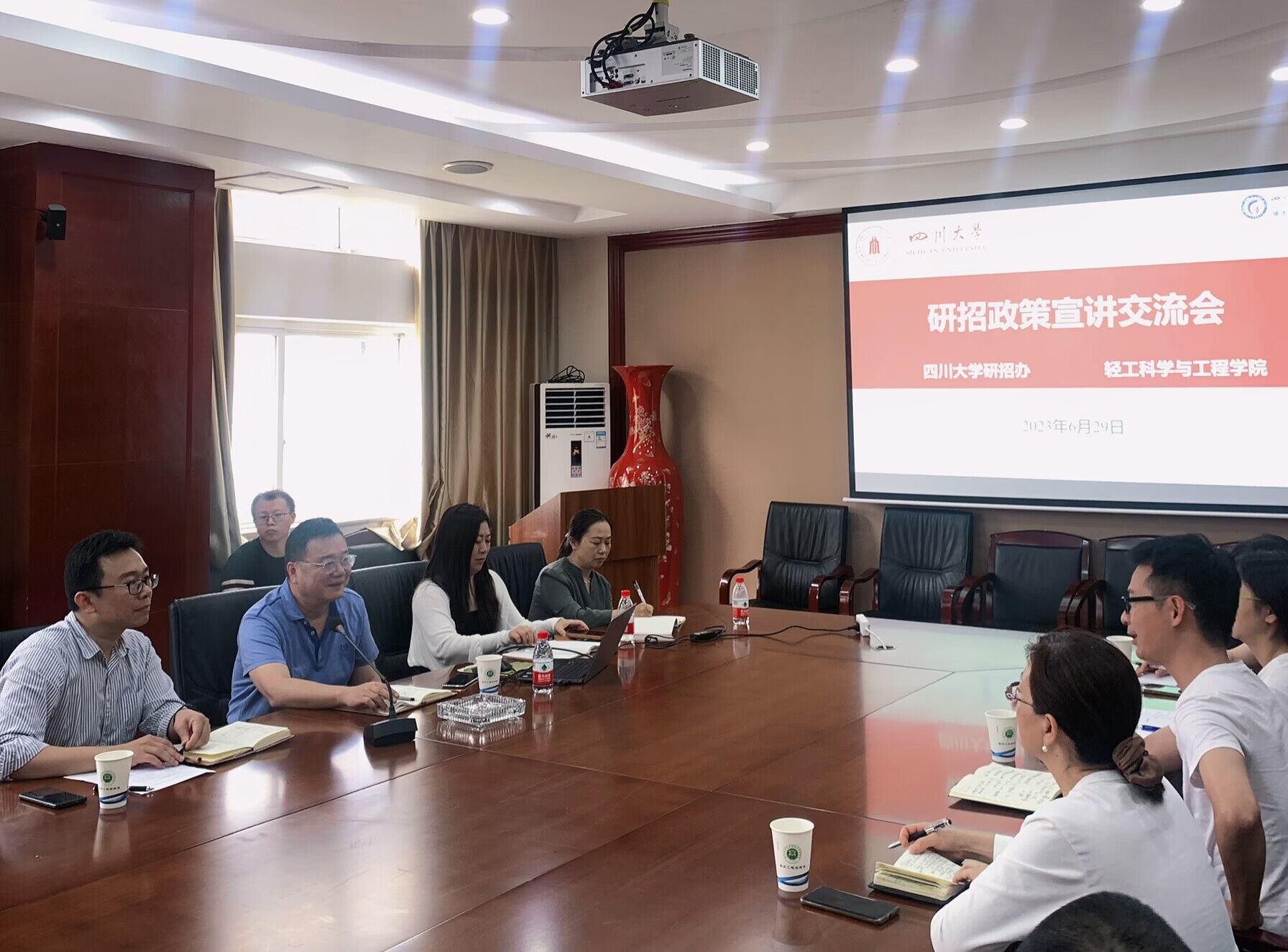 2023年6月29日下午,bw必威西汉姆联官网邀请研究生院招办刘猛主任在学院会议室举行了研究生招生政策宣讲交流会。轻工学院彭必雨院长、冯国涛副书记、迟原龙副院长、廖学品教授、研究生院招生办老师、学院硕博导和其他教学科研岗老师参加了会议。