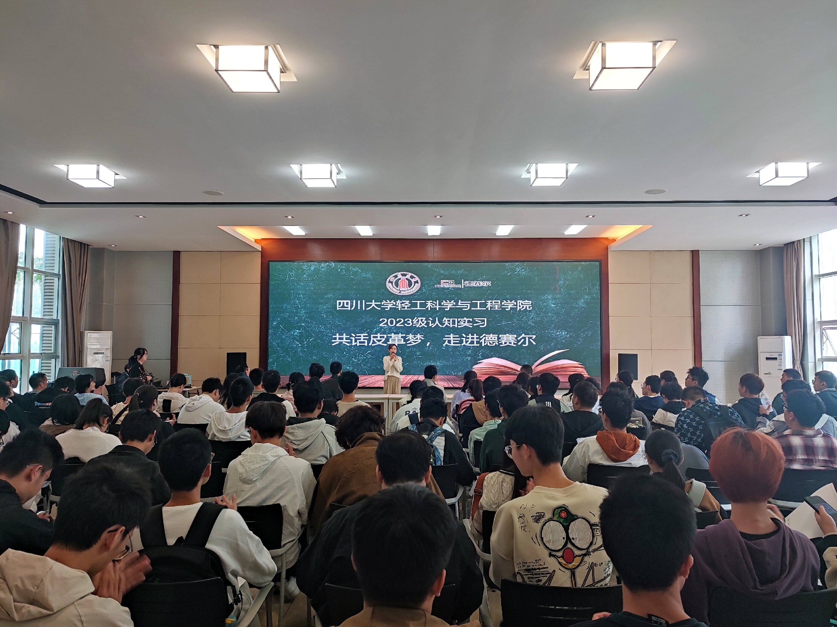 为加强2023级本科生职业生涯规划与专业教育指导,2023年11月4日,学院组织2023级工科试验班(先进低碳材料)专业开展了“共话皮革梦 走进德赛尔”为主题的专业认知实习活动。在学院院长彭必雨教授、学院党委冯国涛副书记、2023级班主任代表张旭老师,辅导员王舒灏老师、余昕玲老师、李有真老师的组织带领下,2023级工科试验班(先进低碳材料专业)本科生以及部分高年级同学一行赴四川德赛尔新材料科技有限公司进行交流学习。