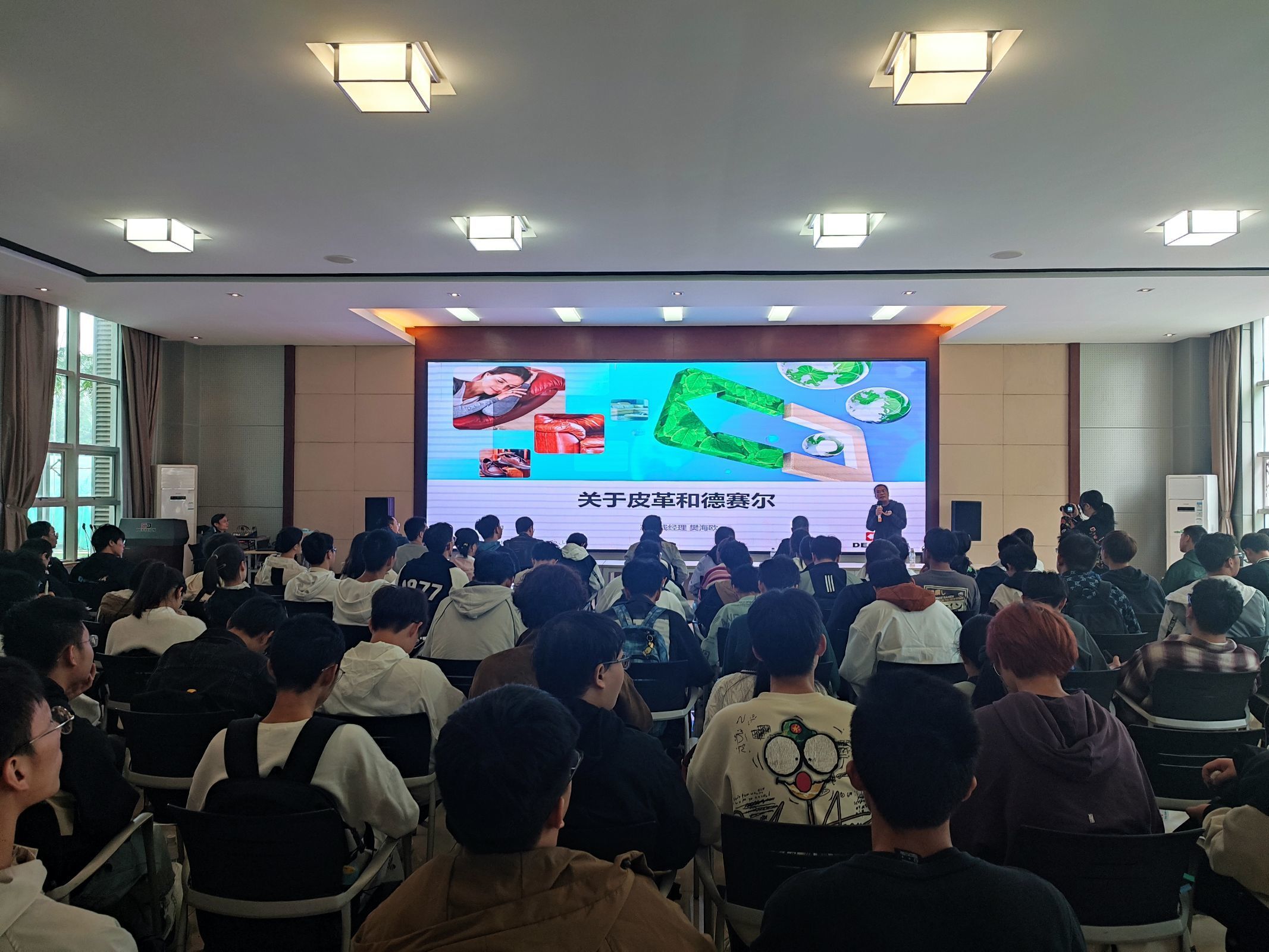 此外,德赛尔公司总经办经理吴璐璐、产品线经理樊海欧分别介绍了德赛尔公司服务探索的历程以及在皮革研发和皮革应用方面的思考,bw必威西汉姆联官网杰出校友水场研发经理孙青永博士分享了自己在公司的成长历程与对同学们择业的建议。
