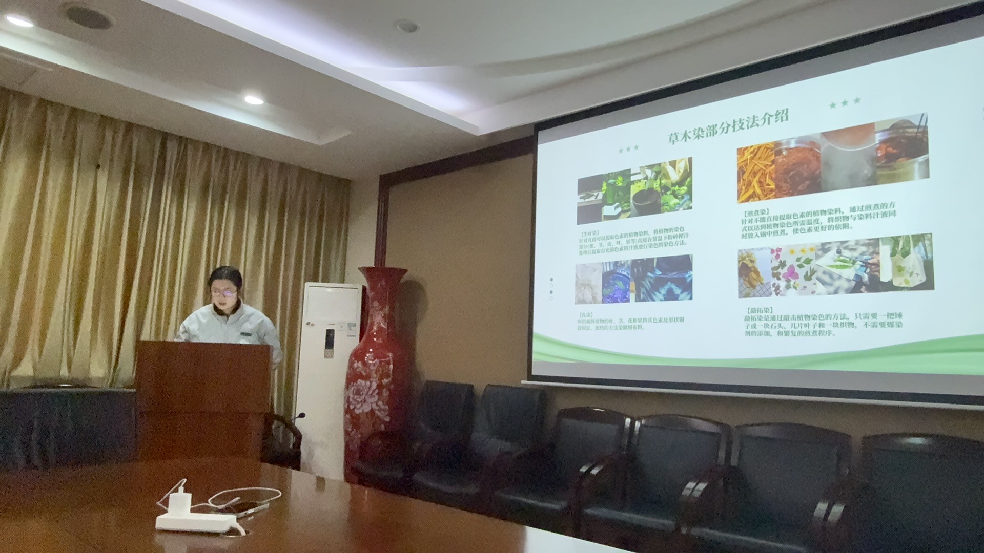 随后,胡熏允同志以“献礼改革开放46周年”为主题,带领大家学习并实践传统手工艺术“草木染”,巧妙地将红色教育与传统文化相融合。胡熏允同志从草木染的历史渊源、文化价值、艺术价值、生态价值、草木染在新时代的发展、草木染的种类几个方面带领大家全面认识草木染,并详细讲解了草木染中敲拓染这一技法。紧接着,全体党员进入草木染环节。党员们从亲手采集的校园内的各类植物叶片与花朵中挑选素材,设计图案布局,运用敲拓染传统技艺,让植物的汁液渗透到织物上,将自然之美定格在帆布包上。这一过程不仅锻炼了党员们的创造力和动手能力,更让大家在亲近自然、感受传统文化魅力的同时,体会到耐心、专注与坚持的重要性,如同每一位党员都需秉持这样的品质,扎实走好每一步。活动过程中,党员们相互交流、协作互助,在一片欢声笑语中完成了一件件饱含心意与创意的敲拓染作品。这一过程,不仅是艺术实践,更彰显了党员们对时代发展与文化传承的深刻感悟与担当。