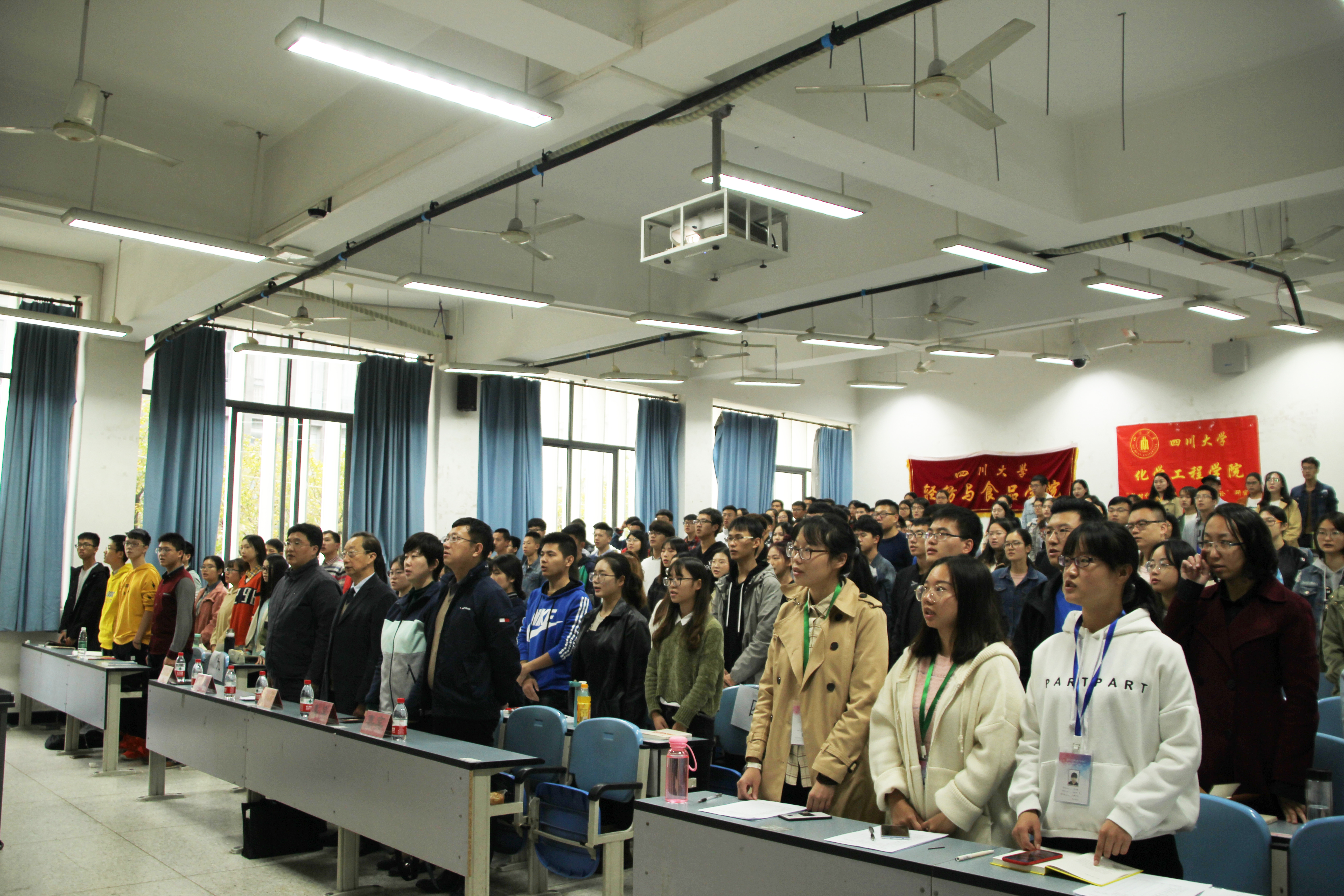 2018年10月20日上午9:00,由四川大学轻纺与食品学院、化学工程学院、建筑与环境学院、艺术学院联办的第145期党校学生党员发展对象培训班,开班仪式暨第一讲在江安校区第一教学楼C座103教室顺利举行。四川大学党校兼职教授汪朝清、轻纺与食品学院党委书记刘晓虎、化学工程学院党委副书记姜利寒、建筑与环境学院党委副书记孙伯雷、轻纺与食品学院党委副书记冯国涛出席本次活动。开班仪式由轻纺与食品学院党委副书记冯国涛主持。