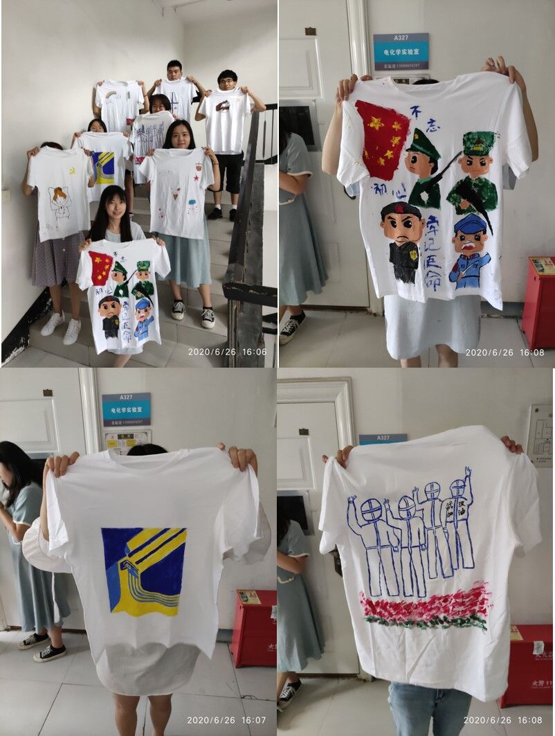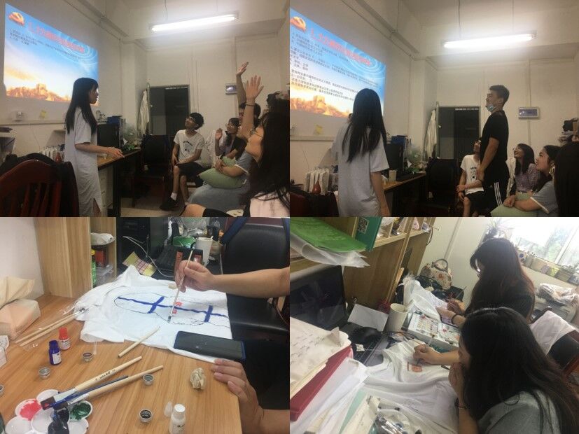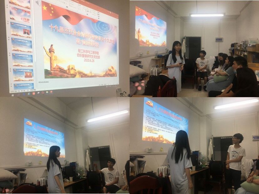 为将学习贯彻党的十九大及十九届历次全会精神引向深入,切实把广大研究生党员的思想认识和行动统一到党的十九大精神上来,2020年6月26日下午,学院2017级纺织服装研究生党支部于纺工楼313教室召开十九届历次全会精神内容竞答及十九大主题T恤绘制竞赛的特色组织生活会。