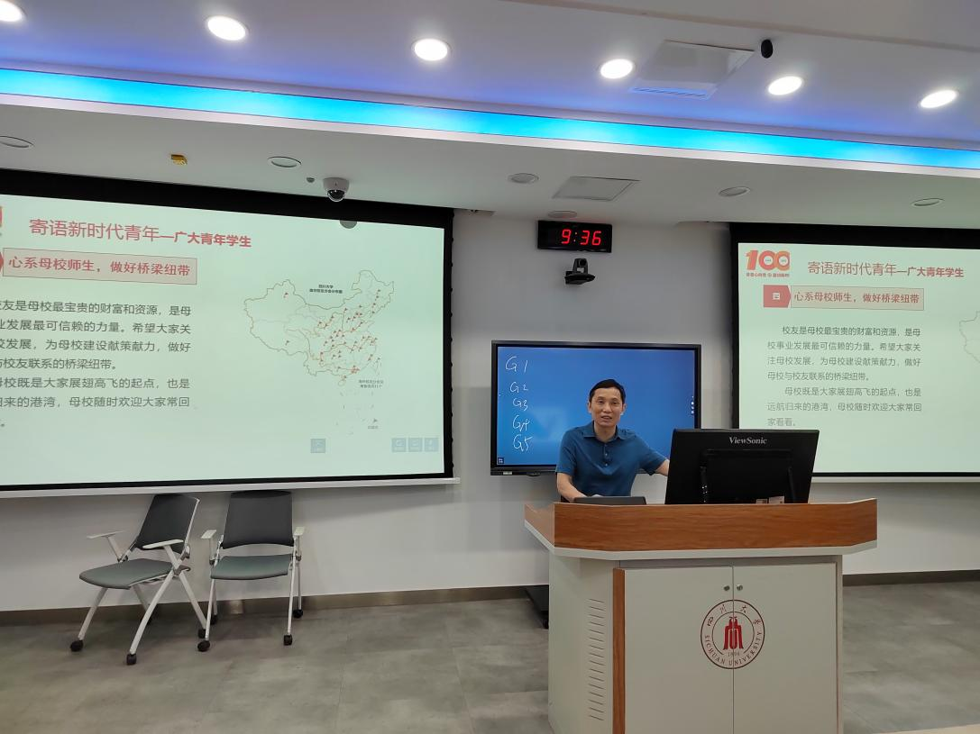 2022年6月8日上午,李天富书记在基础教学楼C103教室为bw必威西汉姆联官网本科生第一党支部和第二党支部全体党员讲授“建团百年心向党,砥砺奋进新征程”专题党课。学院党委冯国涛副书记、本科生第一党支部支部书记王舒灏老师、本科生第二党支部支部书记杨维老师以及两个支部全体党员同志参加了本次学习。本次党课由冯国涛副书记主持。
