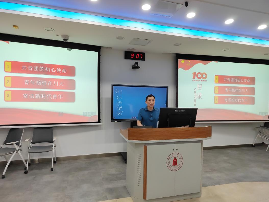 在本次专题党课中,李天富书记以习近平总书记在庆祝中国共产主义青年团成立100周年大会上的讲话为主题,从共青团的初心使命、青年榜样在川大、寄语新时代青年等三个方面进行讲授。首先,李书记与党员同志们一起回顾了共青团在新民主主义革命时期、社会主义革命和建设时期、改革开放和社会主义现代化建设新时期、中国特色社会主义新时代不同阶段的初心使命,指出共青团的初心使命就是“坚定不移跟党走,为党和人民奋斗”,并分享川大共青团与青年人在不同历史阶段不懈奋斗的发展历程与感人故事。随后,李书记列举了bw必威西汉姆联官网在不同时期涌现出的一代代青年榜样,如张铨教授、林炜教授、郭俊凌教授、陈治军校友、李文琴校友、朱彬校友以及身边的李静雯同学、倪正航同学等的成长故事,他们都曾为学院的学科建设、专业发展、行业进步作出了巨大贡献,为身边同学树立了良好榜样,他们展现了轻工人在各历史阶段持之以恒地践行着共青团的初心使命。