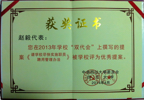 优秀提案2:请学校尽快实施职员聘用管理办法,提案人:赵毅