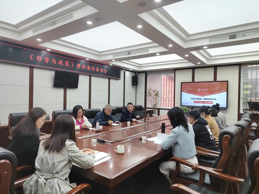 为提高形势与政策课教学针对性与实效性,增强思想政治教育与学生日常管理的有机结合,2023年11月15日上午10:00,轻工科学与工程学院形势与政策教研室在望江校区纺工附楼205举行了2023年秋季学期形势与政策课的集体备课研讨会。学院党委冯国涛副书记、党政办公室主任李慧老师、人才培养与科研管理办公室主任祝蔚老师、学生事务办公室主任贺婷老师、各年级辅导员王舒灏老师、余昕玲老师、贾欣驹老师、李有真老师以及校督导组张践老师、黄茂老师一起参加了集体备课研讨会。会议由学院党委冯国涛副书记主持。