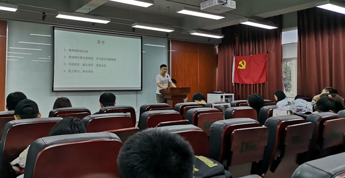 “考研小导师”任志军学长根据自己对考研情况的深入了解,对2021年的考研形势进行了分析,尤其是在疫情背景下,研究生报考人数将可能会持续增加,考研竞争进一步增大,并鼓励大家唯有做好充分的复习准备,才能在考研群体中脱颖而出。在备考方面,他建议同学们寻找研友,以组队的形式进行考验准备,这样的形式有助于信息共享。然后帮助同学们熟悉考试流程,包括考前报名、初试复试准备及之后的注意事项,还结合自己的考研经历,帮助同学们树立考研信心、调整备考心态。