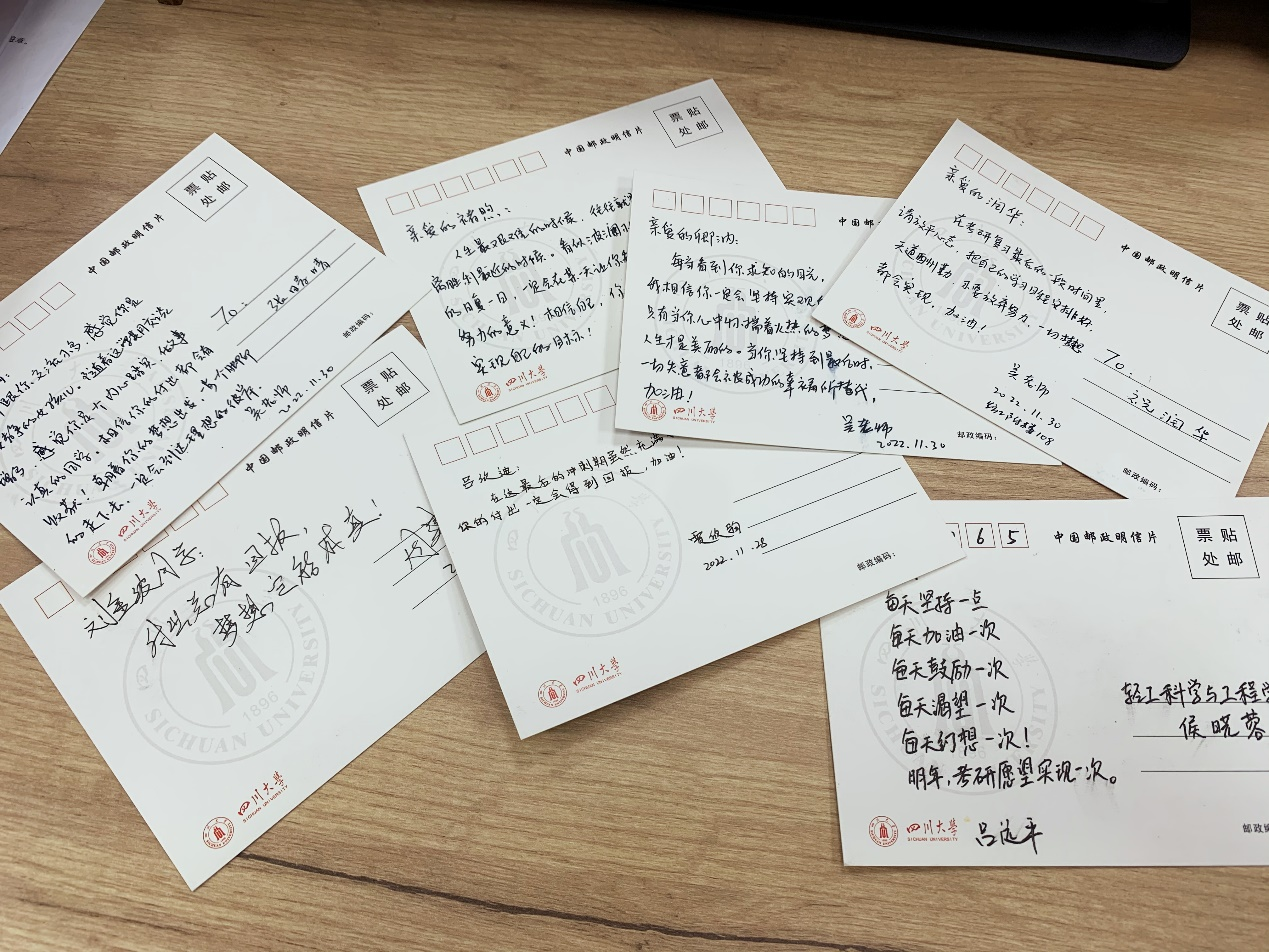 宣誓结束后,同学们有序进行第三次模拟考试。考试结束后,贾欣驹老师为同学们发放了学院精心准备的“暖心大礼包”,班主任们也通过明信片的形式为考生们加油打气。接下来,思学中心朋辈导师将联合新东方辅导老师进行评阅和试卷讲解,对于共性问题进行集中解答,对于个性问题进行一对一沟通,指导大家查漏补缺。