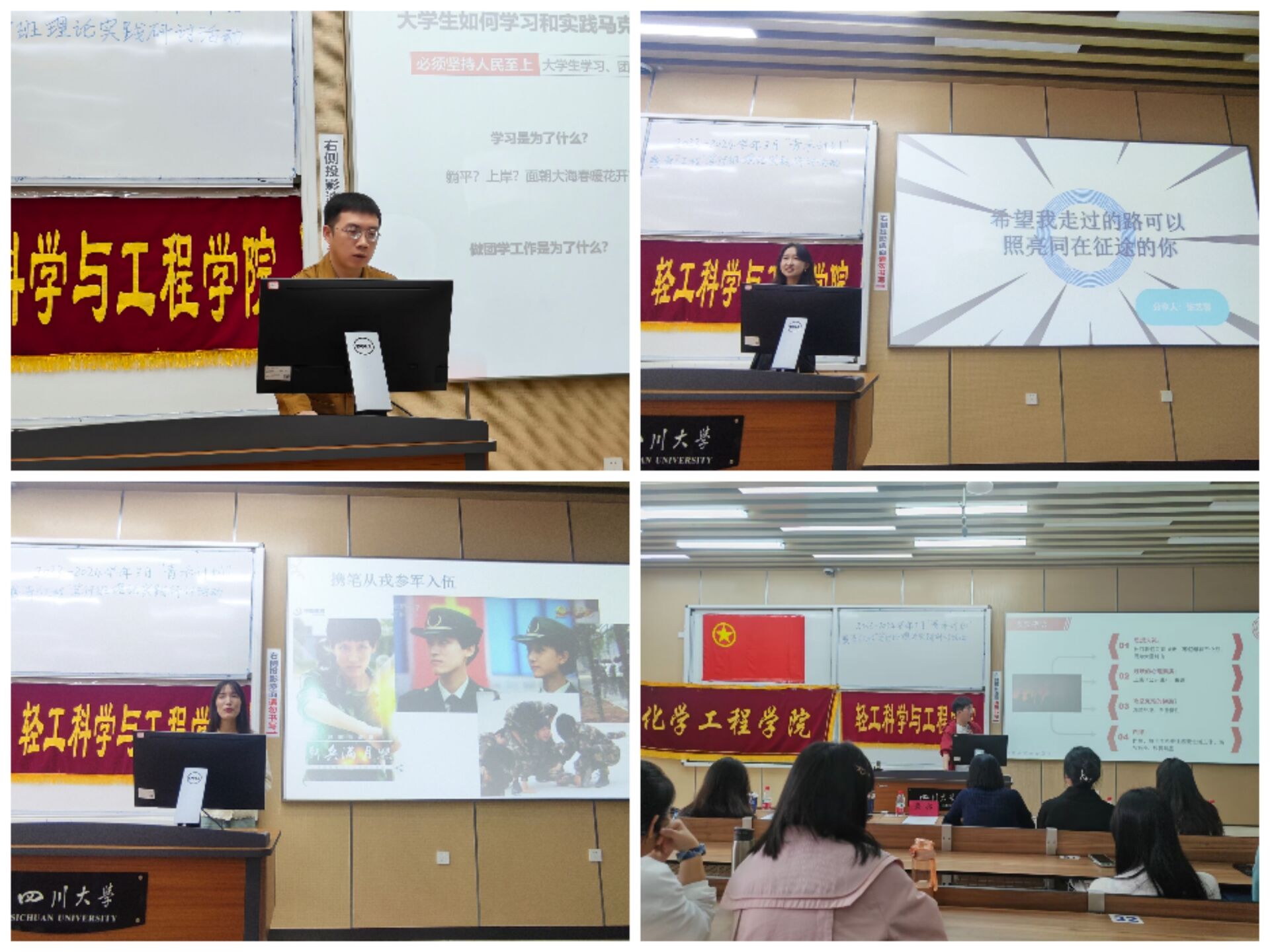 随后,周俊老师以“青年马克思与青年马克思主义者”开展了主题讲座,周老师就根本立场、基本观点、重要方法、思考深度这几个角度回答如何成为青年马克思主义者。张艺馨同学重点强调了生涯规划的重要性以及分享自己的学习经验。王林梵同学作了题为“步稳心坚,勇往直前”的经验分享,主要讲述了自己参军入伍、考研上岸所收获的成长和经验。李俊同学以“千纸鹤”支教队课程负责人的身份,重点介绍了这一支队伍出发的初心和意义,鼓励同学们积极投身于公益活动中。