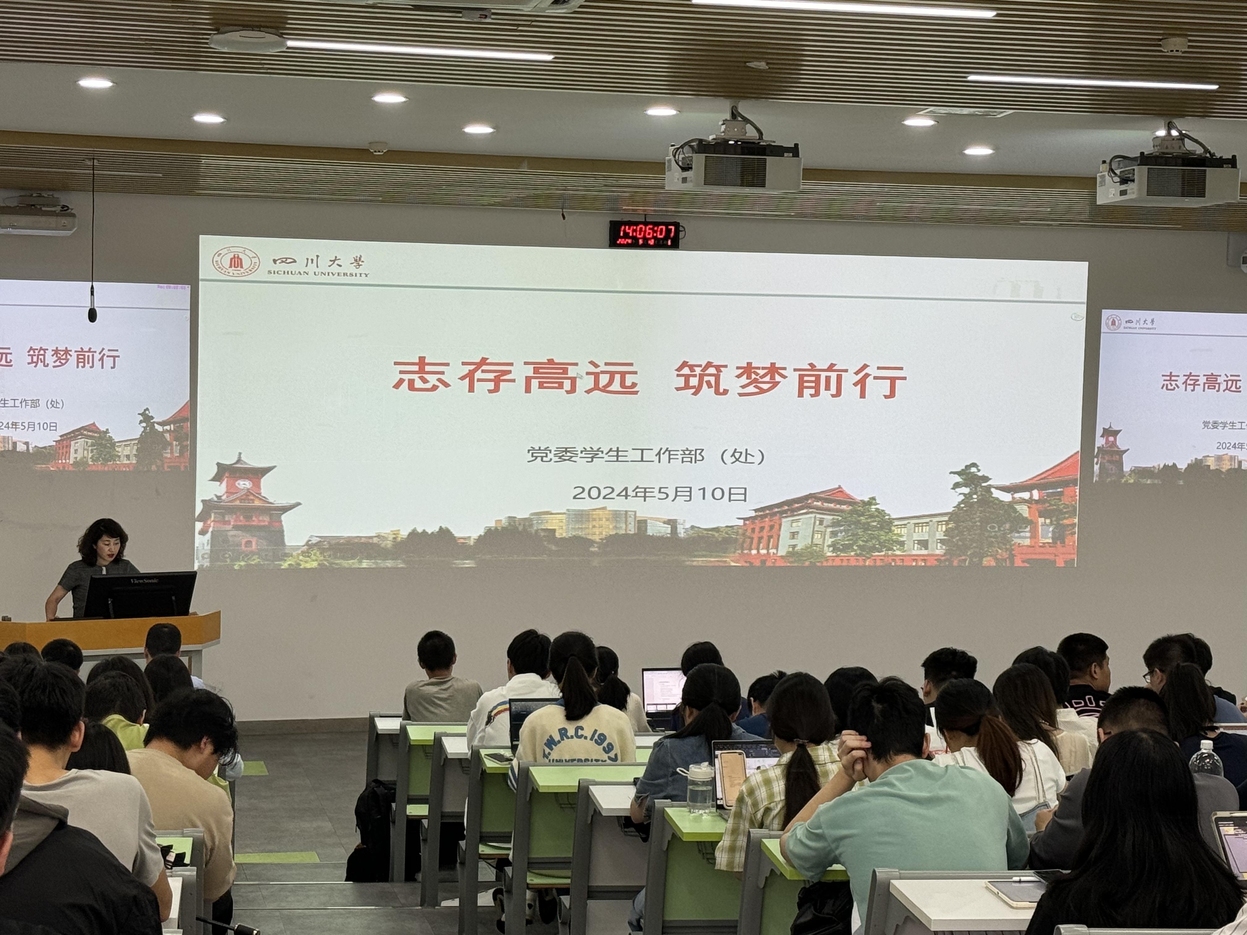 为帮助2021级本科生正确认识近年来的深造形势、了解最新深造政策,充分调动学生深造积极性,增强深造内驱力,2024年5月10日下午,学院在望江校区基础教学楼C201举办了2021级本科生深造动员会。出席本次深造动员会的嘉宾有四川大学学工部黄菲娅副部长、学院党委冯国涛副书记、2021级辅导员贾欣驹以及学院思学中心管理团队和朋辈导师,2021级全体本科生参加了本次深造动员大会。