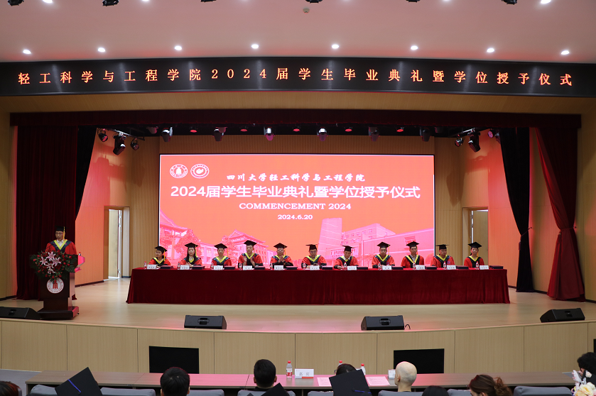 彭必雨院长代表学院党政致辞。首先,彭院长向2024届圆满完成学业,获得学士、硕士、博士学位的同学表示最热烈的祝贺!其次,彭院长一起回忆了2024届同学们与轻工学院一起成长的点点滴滴,并介绍了学院近几年在人才培养方面的成效。再次,彭必雨院长对2024届毕业生提出三点希望:一是希望同学们志存高远、砥砺奋进;二是希望同学们要终生学习,勇于探索;三是希望同学们要健康乐观,担当有爱。用大学四年所学知识报效祖国,用收获回馈社会,用练就的坚强意志肩负起时代重任。最后,彭必雨院长也衷心祝愿全体毕业生,在人生新的征途中,找准定位,抓住机遇,在新的人生征程中创造出无愧于时代的辉煌业绩!