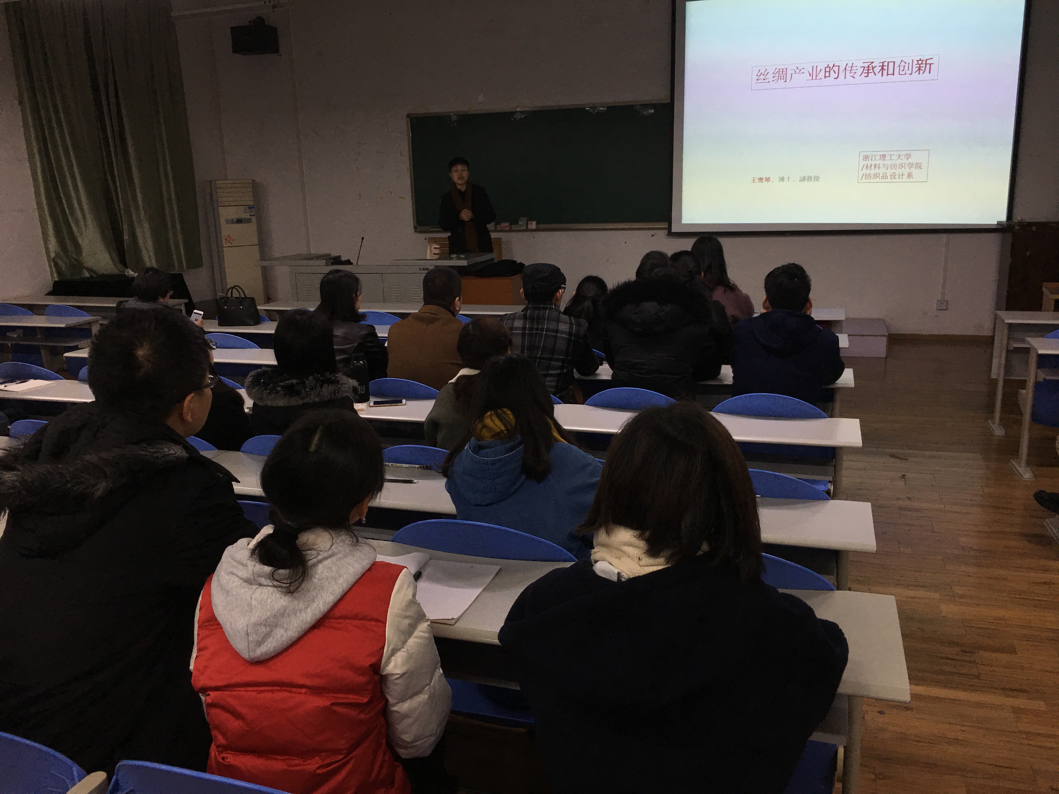2017年12月20日晚上,浙江理工大学王雪琴副教授(香港理工大学硕士及博士)在纺工副楼205报告厅做了题为“丝绸产业的传承和创新”的学术报告。报告会由四川大学纺织与工程系主任郭荣辉副教授主持,纺织与服装工程系教师、本科生和研究生聆听了王雪琴副教授的精彩报告。