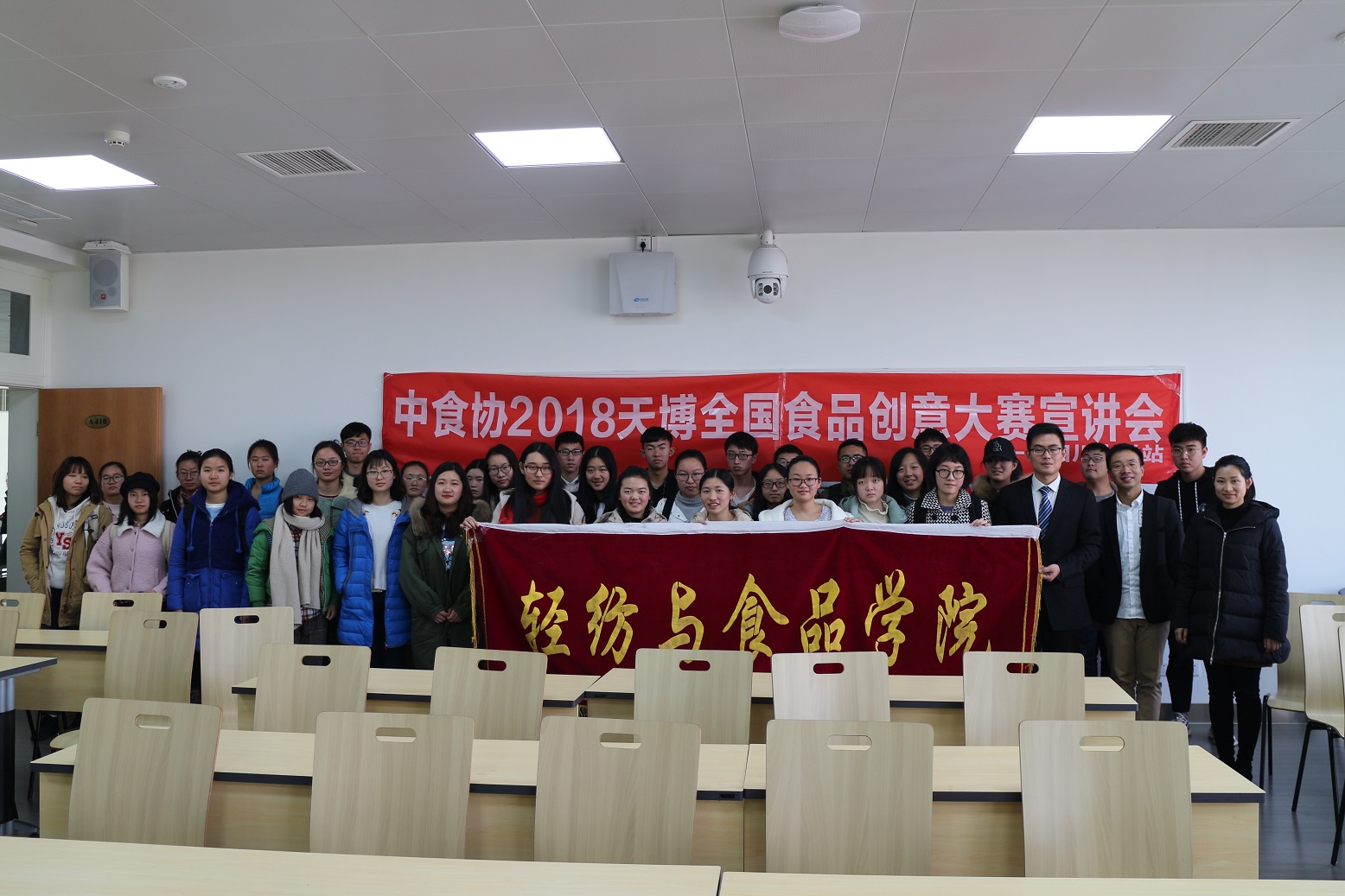 2017年12月26日,天博食品创意大赛宣讲会在四川大学江安校区第一教学楼A座410教室顺利举办,到场嘉宾有山东天博食品配料有限公司市场经理、天博食品创意大赛负责人程林先生,四川大学轻纺与食品学院食品系实验教学教研室主任曾维才博士以及四川大学轻纺与食品学院食品系李欣蔚老师。轻纺与食品学院食品科学与工程专业2017级,2016级同学参加了此次宣讲会。
